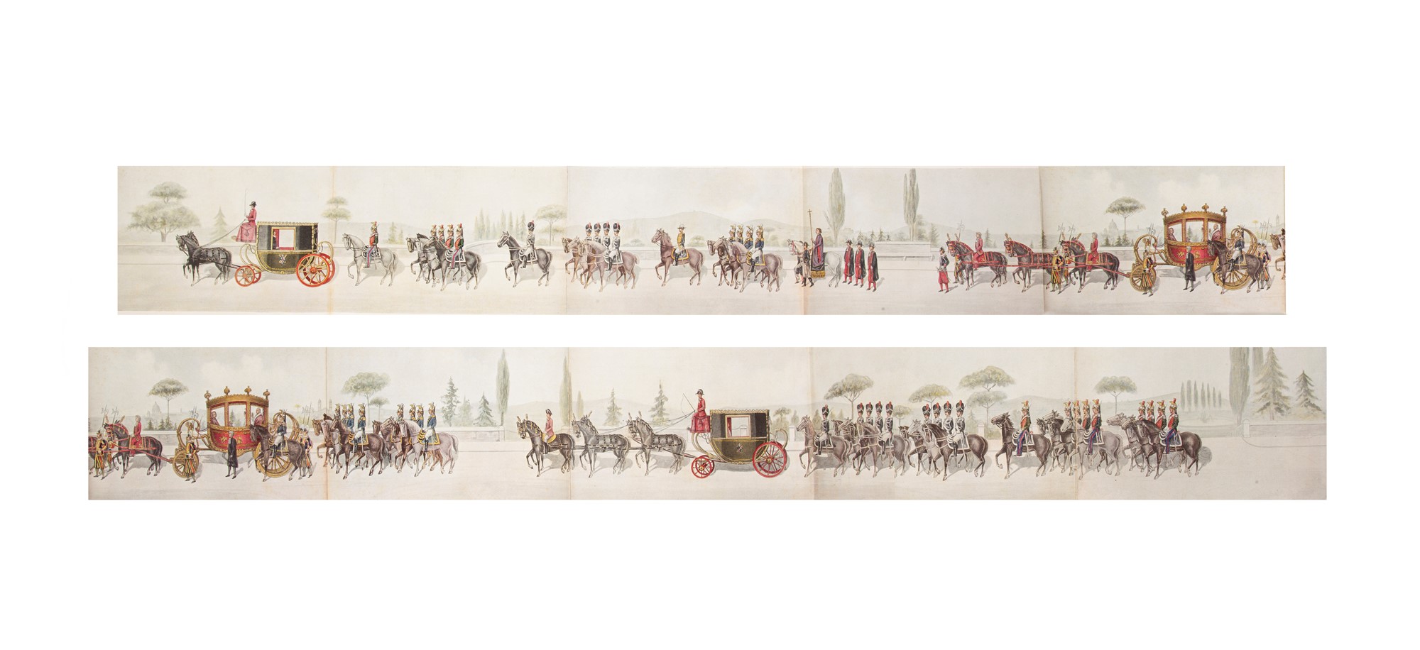 Album con XX tavole a piena pagina all'acquaforte a più colori raffiguranti l'Esercito pontificio, più un tavola ripiegata più volte raffigurante il corteo di papa Pio IX