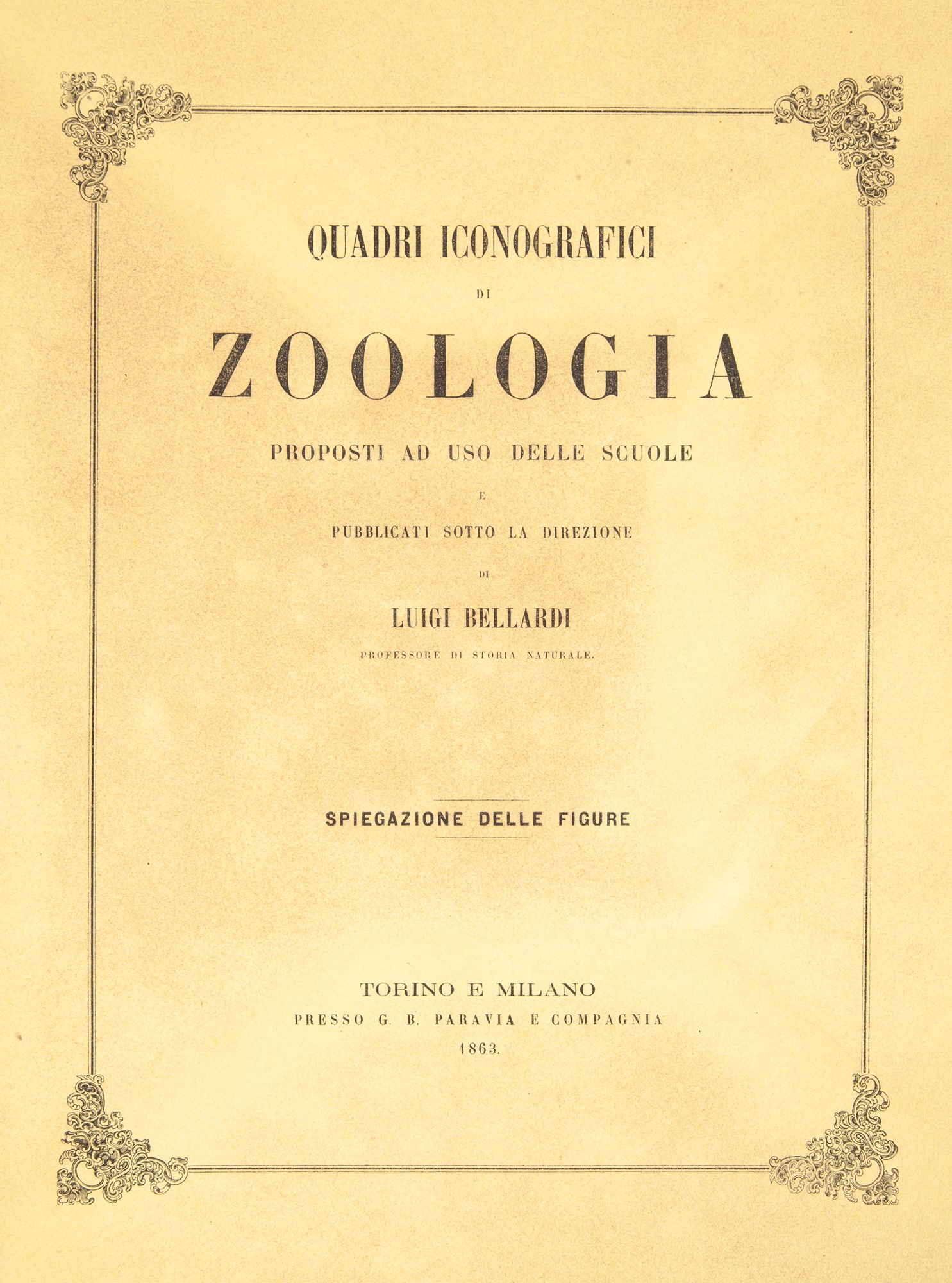3 libri illustrati con tavole del XIX secolo: Luigi Bellardi - Quadri iconografici di Zoologia, Paravia Torino-Milano 1863; - Quadri iconografici di Botanica, Paravia Torino-Milano 1863