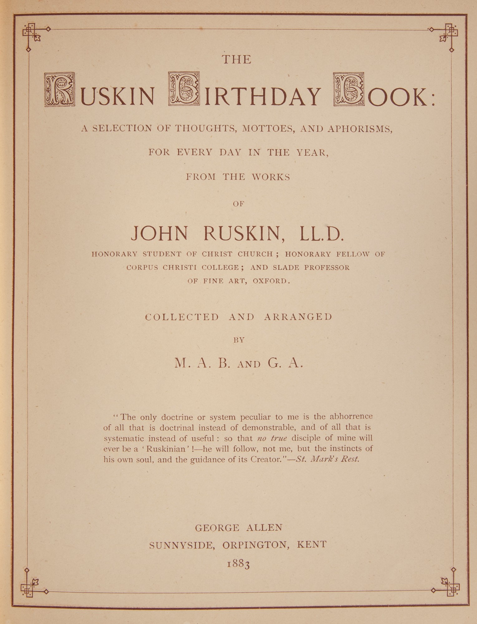 John B[ateman] M[aud], A[llen] G[race] - The Ruskin Birthday Book A selections of thoughts, mottoes, and aphorism, for every day in the year, from the works of John Ruskin, LL.D.