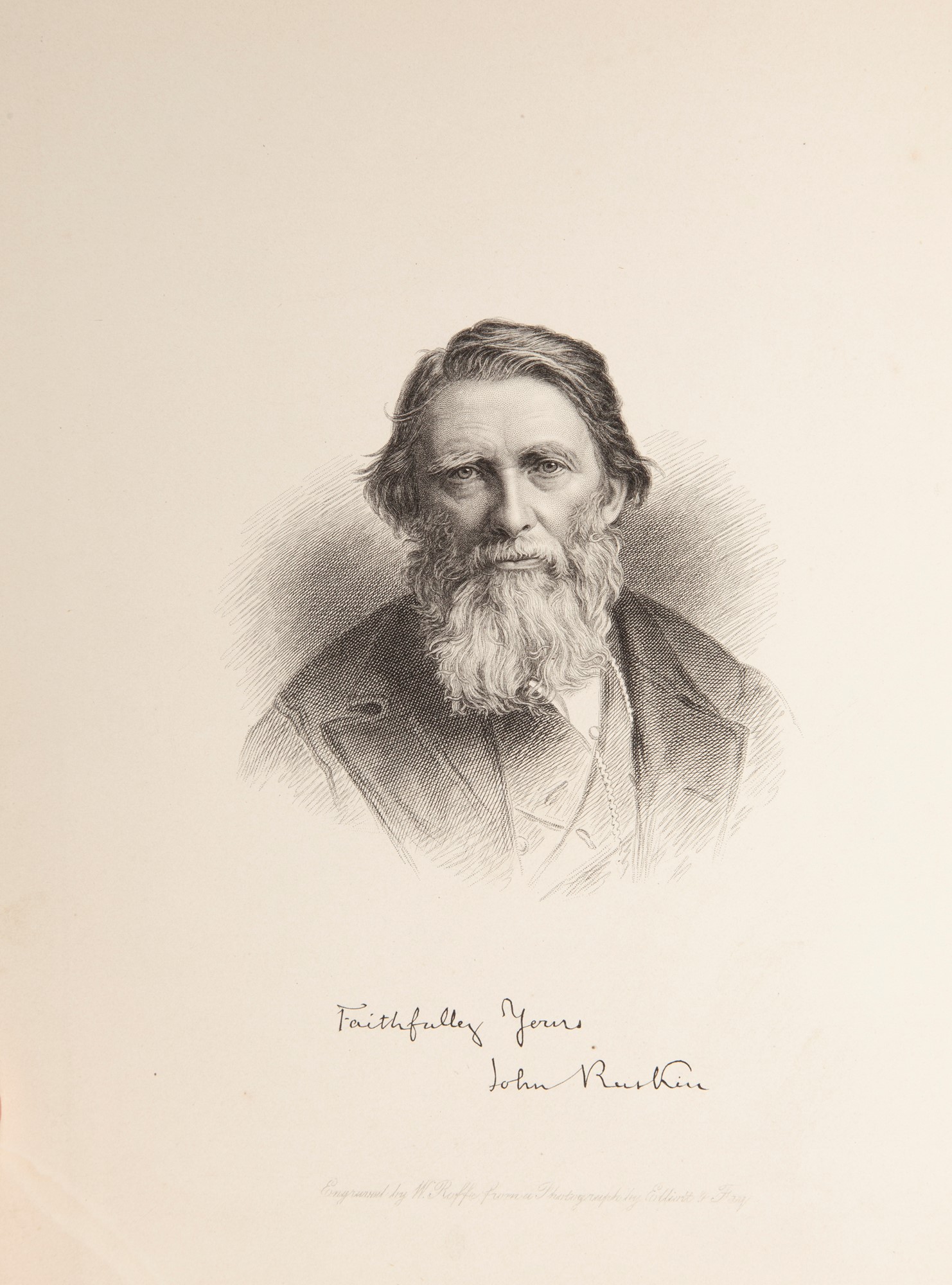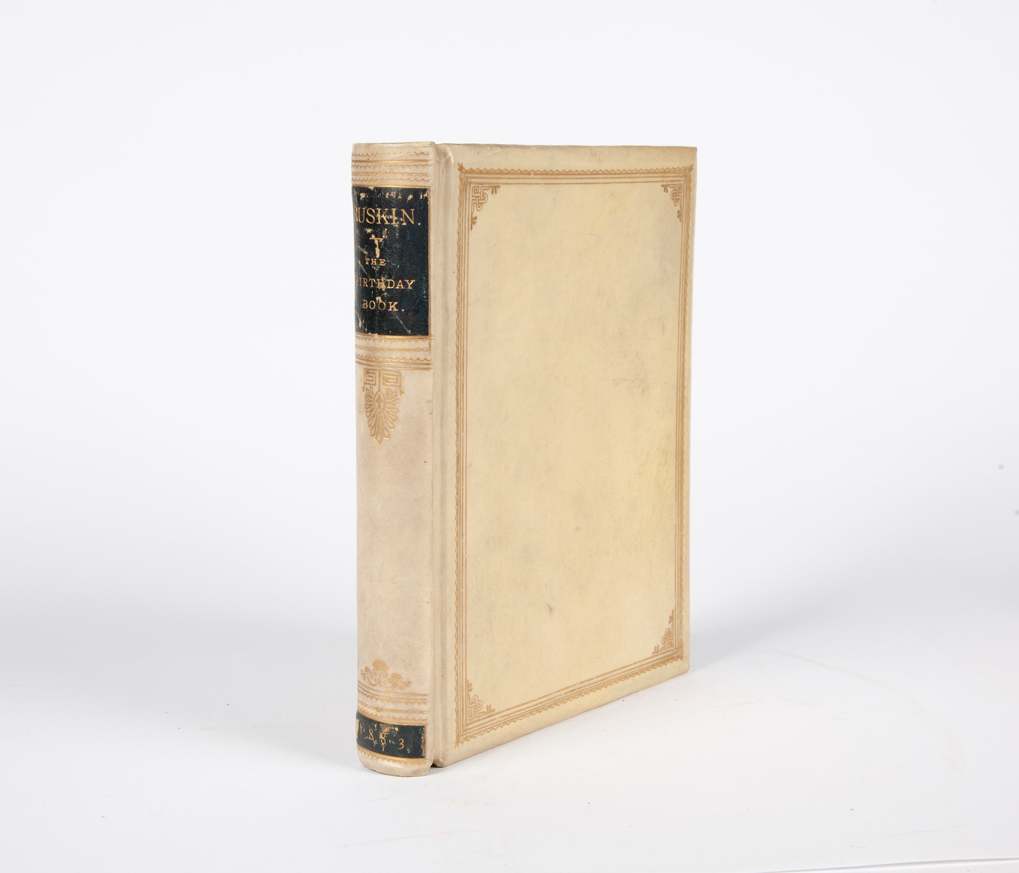 In 8° Un delizioso libro di compleanno contenente una bella selezione di pensieri, citazioni ed aforismi di John Ruskin, per ogni giorno dell'anno. Con una sezione vuota accanto a ciascuna data in cui il proprietario può annotare i compleanni delle persone. Pregevole legatura coeva in piena pergamena con titolo in oro su tasselli in pelle e fregi in oro al dorso, piatti con filettature in oro e tagli dorati.
