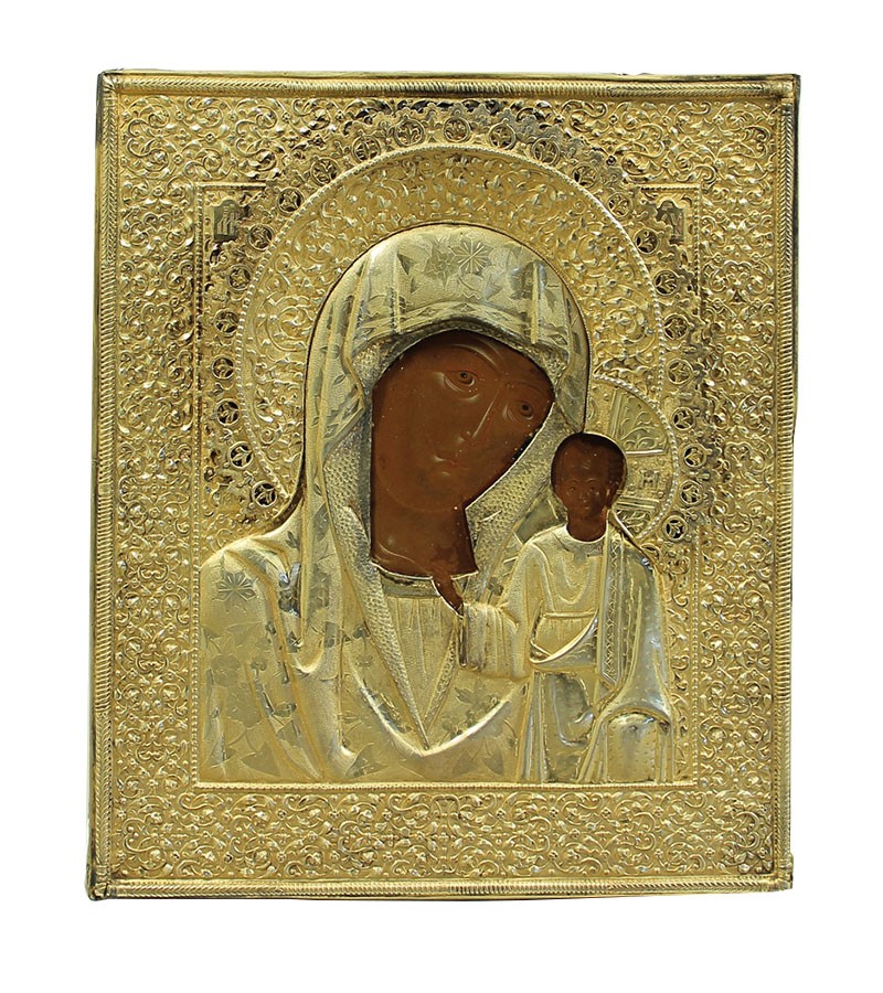 'Madre di Dio di Kazan' tempera all'uovo su tavola con riza in argento Mosca 1876
