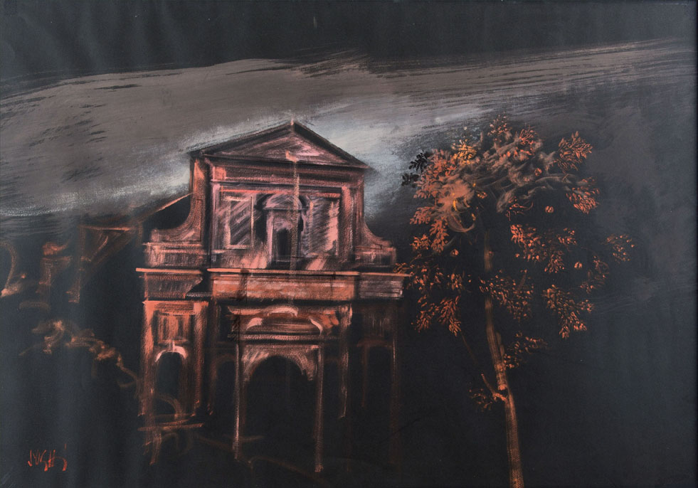 La chiesa e l'albero (The church and the tree), 1972/73, tempera on card