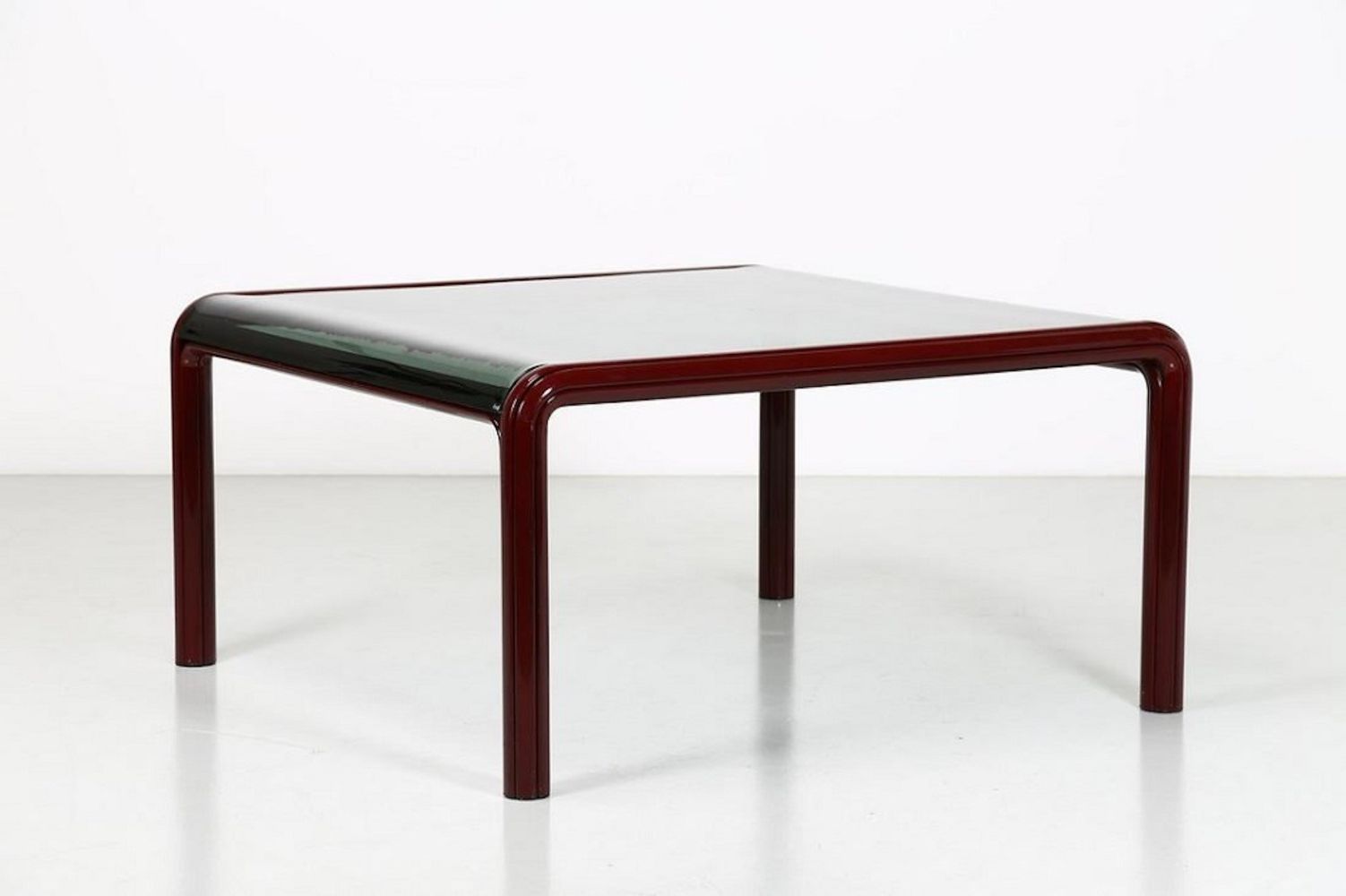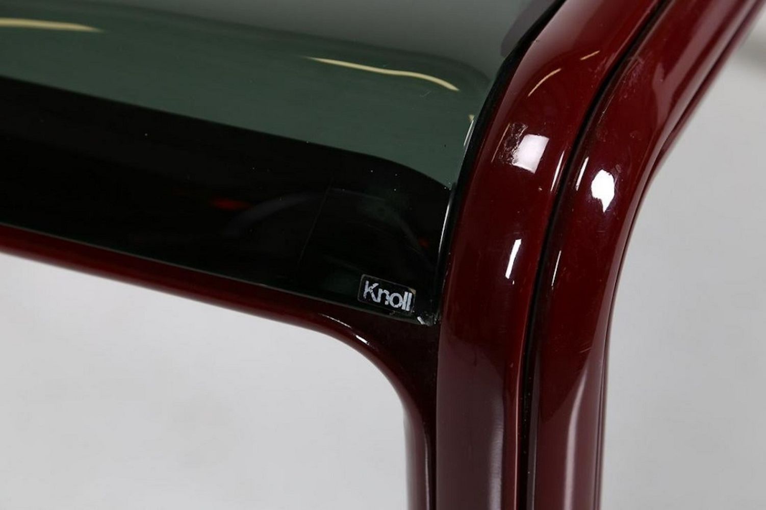 Tavolo da pranzo di Gae Aulenti per Knoll realizzato negli anni '70 del XX secolo. Piano in vetro curvato; visibile l'etichetta del brand; piccoli graffi sul vetro.