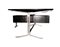 Scrivania angolare vintage in legno laccato nero con gambe in metallo cromato spazzolato; top in vetro; Realizzata da Moscatelli per Formanova.