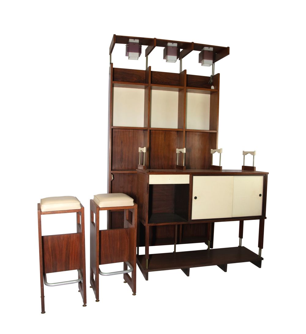 Set mobile bar 1960 -Bar Counter: cm 115x120x40; -Back counter: cm 224x120x42; Stools: cm 76x30x37