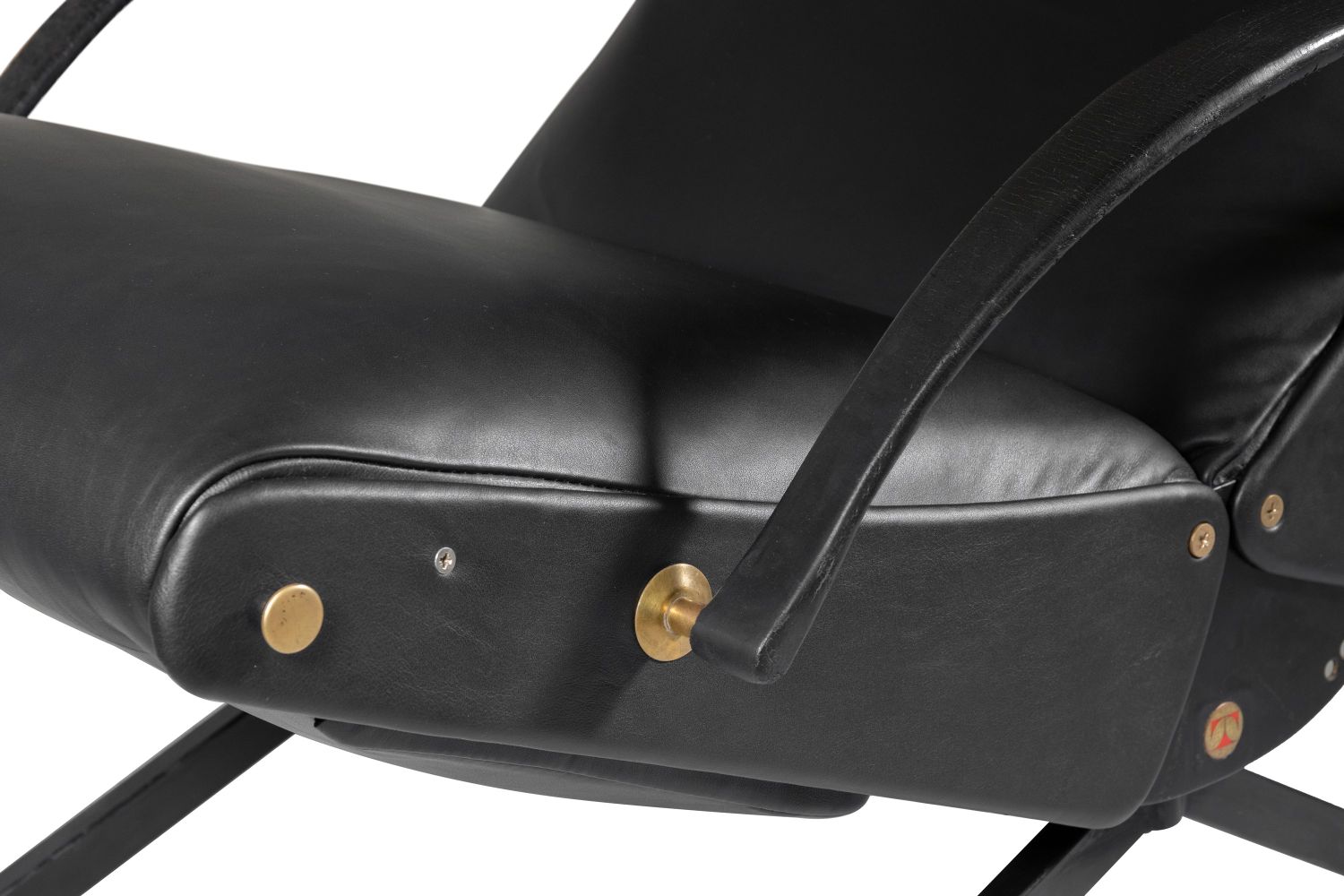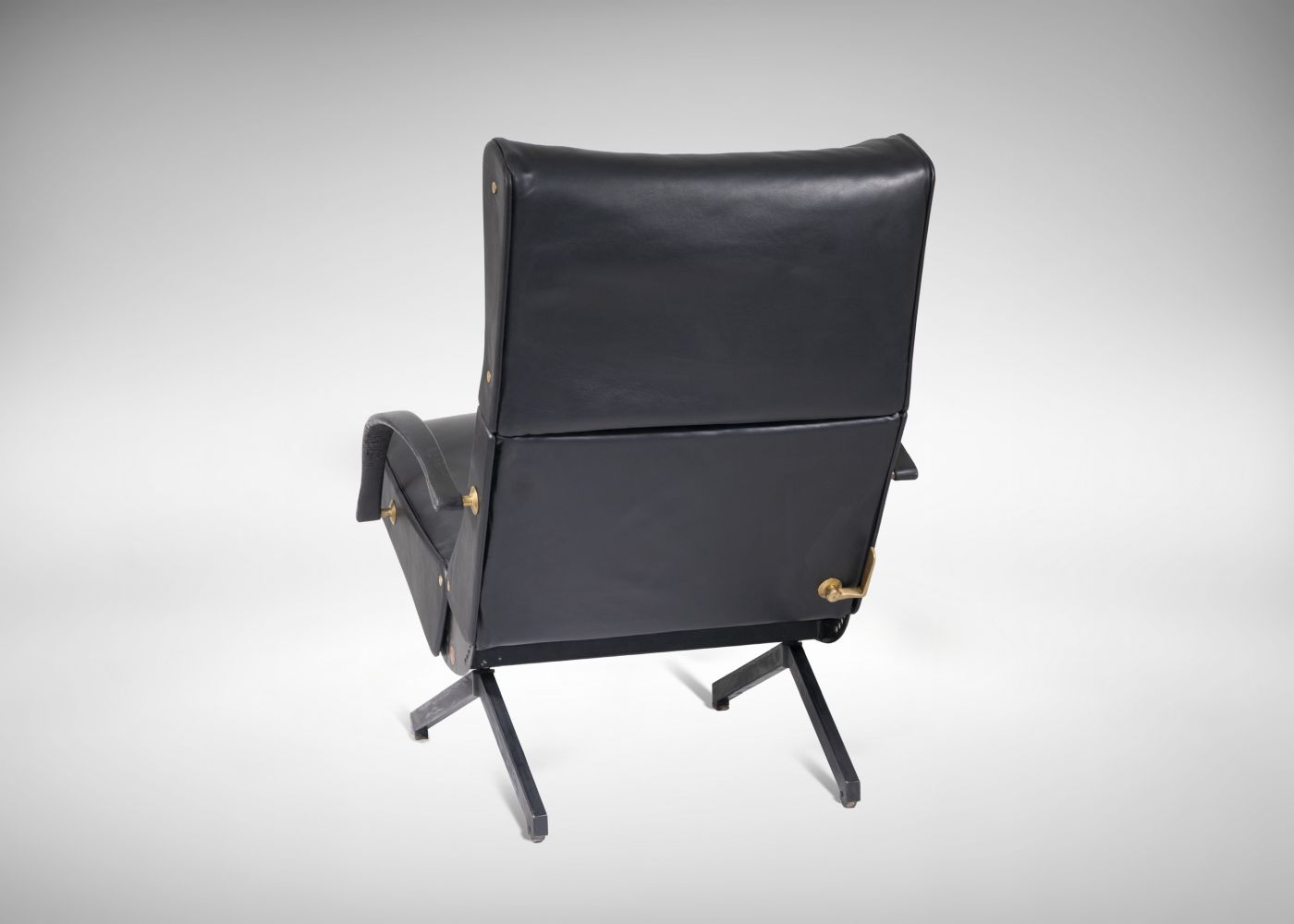 Poltrona regolabile P40 vintage realizzata da Osvaldo Borsani per Tecno, 1956. Prima edizione di questa iconica poltrona. Oggi la P40, nella sua prima edizione prodotta fino agli anni '60, è esposta al MOMA di New York e San Francisco, al Center Pompidou di Parigi, al Victoria and Albert Museum di Londra e, naturalmente, alla Triennale di Milano.