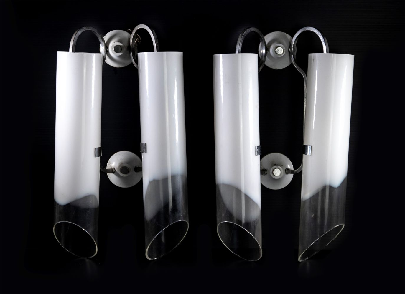 Elegante coppia di applique realizzate in vetro bianco dal designer Carlo Nason per Mazzega.