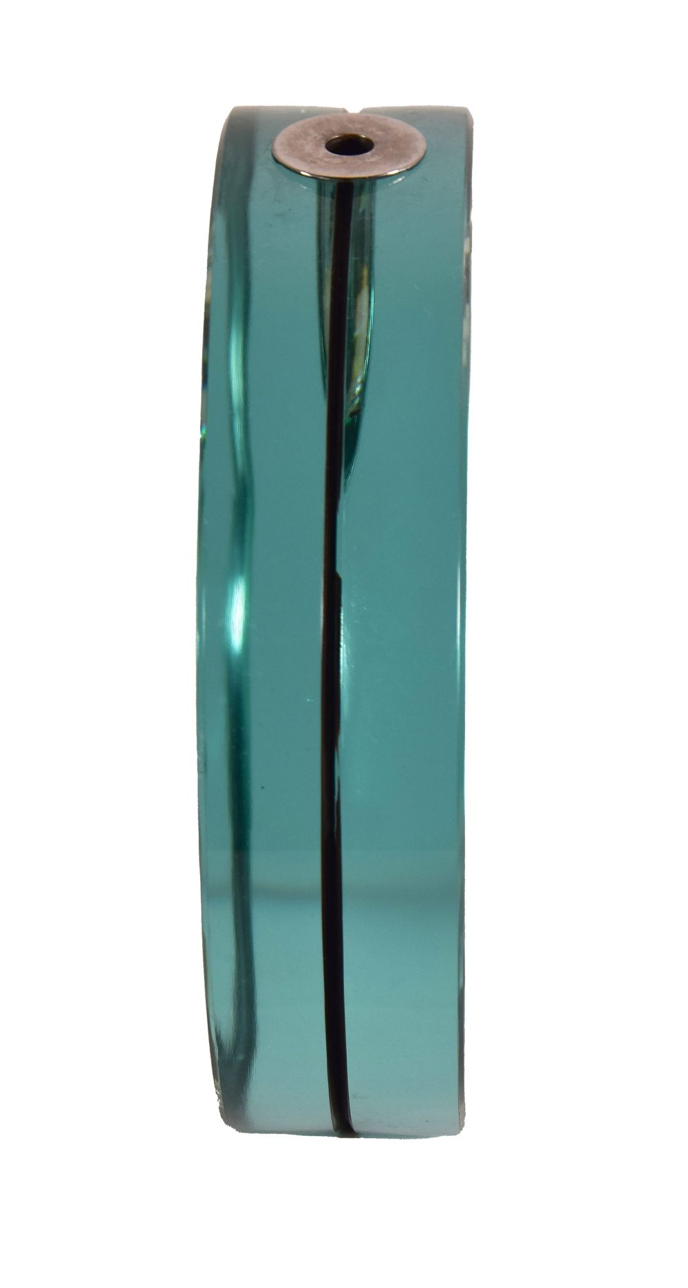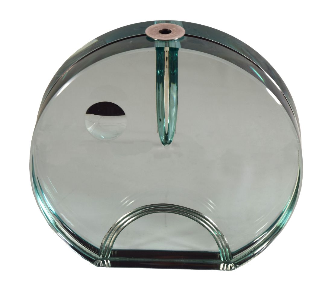 Prezioso vaso progettato dai designer italiani Luigi Radice e Pierangelo Gallotti negli anni Sessanta. Vaso circolare verde in metallo cromato e cristallo tagliato.