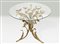 Ottone e vetro lavorati a mano. Base del tavolo: altezza 52 cm; profondità massima 53; Diametro del vetro: 60 cm
