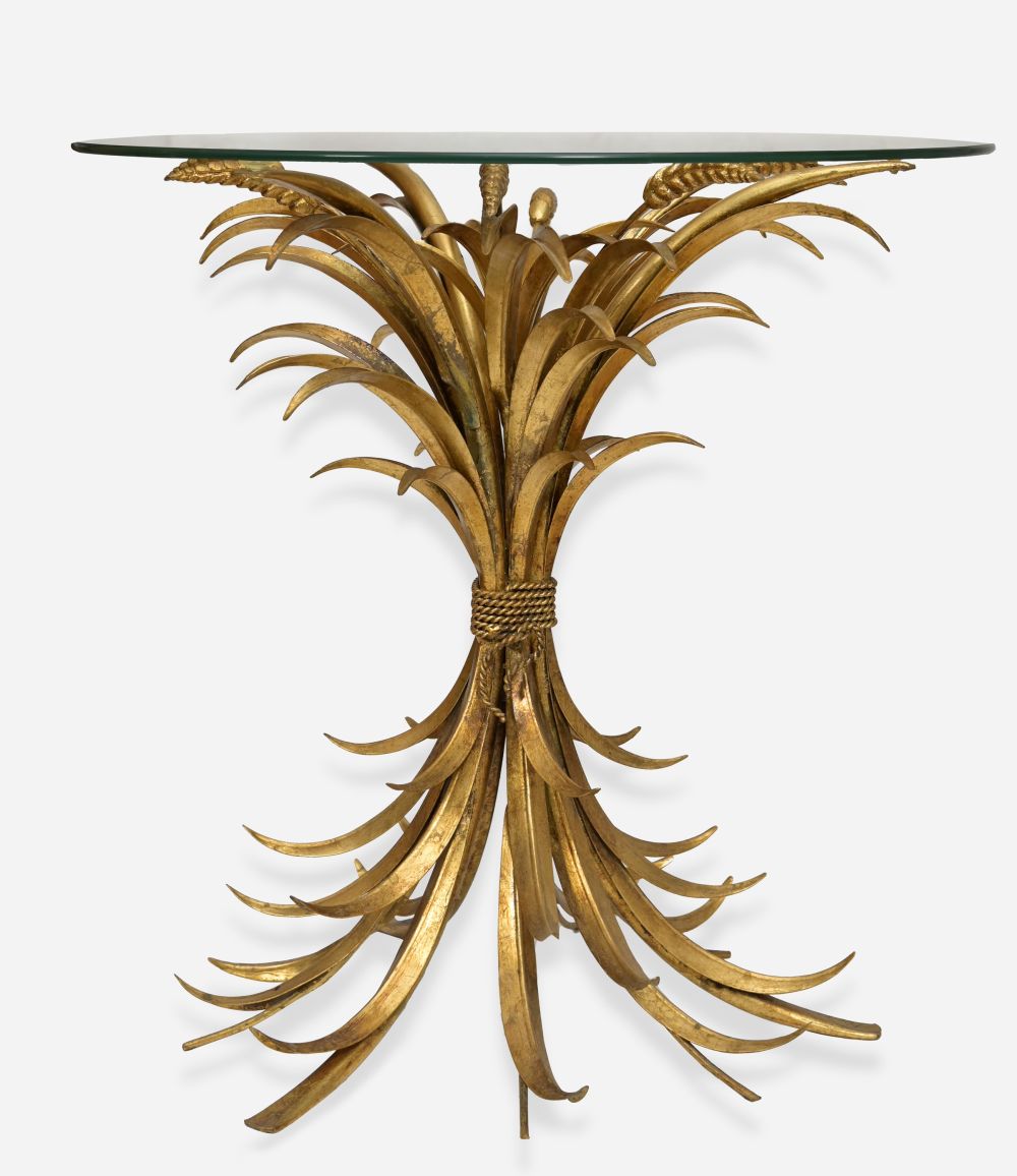 Ottone e vetro lavorati a mano Base del tavolo: altezza 52 cm; profondità massima 53; Diametro del vetro 50 cm