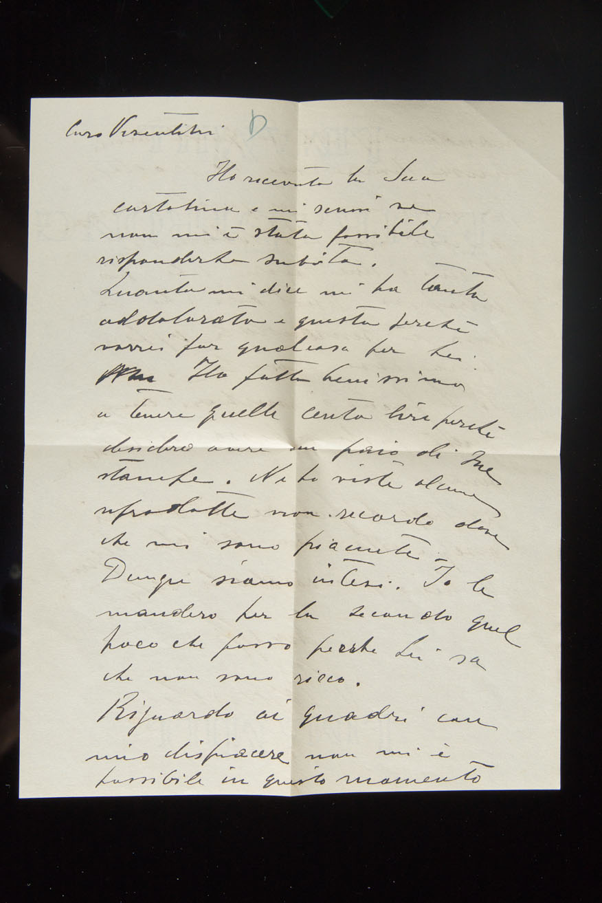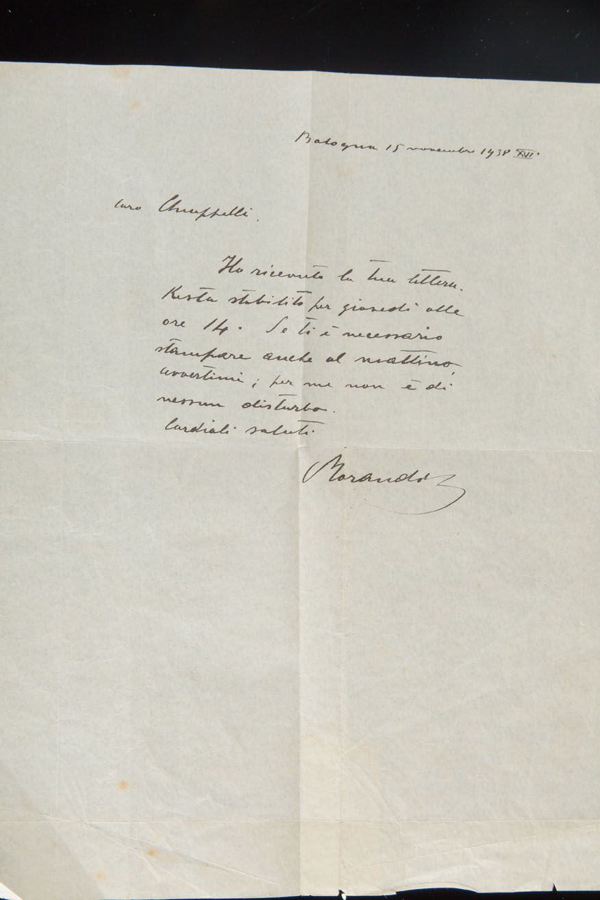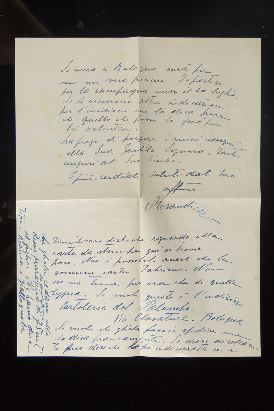 This lot consists of fourteen letters written by Giorgio Morandi to Gianni Visentini. The content holds particular importance from the point of view of collecting as Morandi describes some technical steps in his graphic art. Also of note is a small drawing on the envelope of one of the letters.