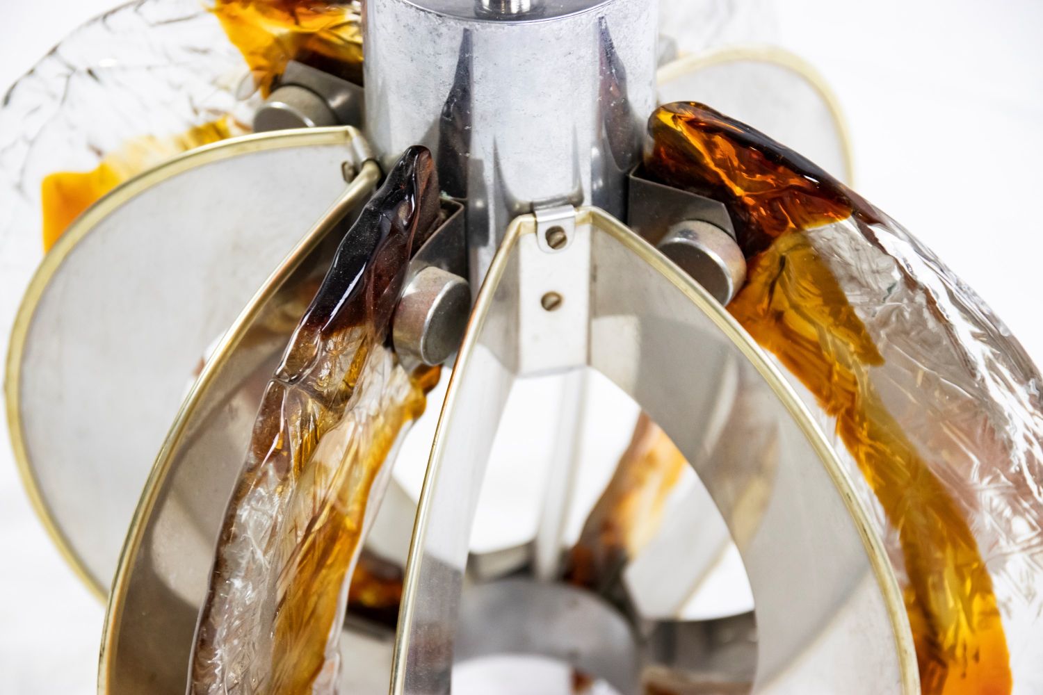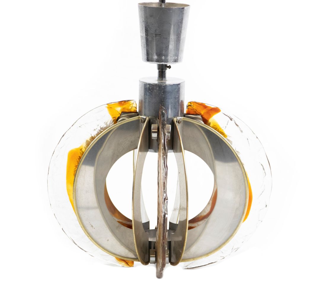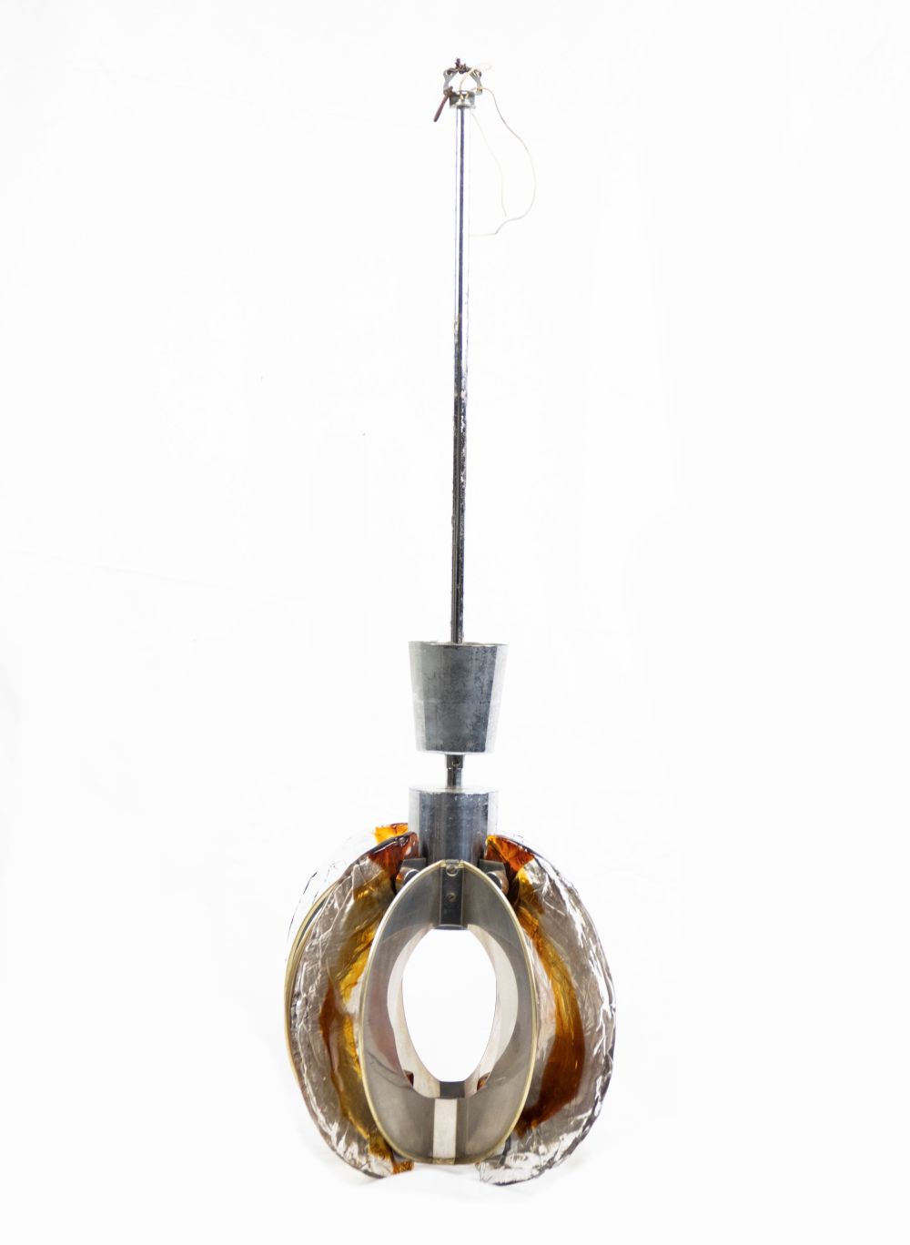 Lampadario vintage in vetro e acciaio di La Luce Roma 1970s 40x100 cm.