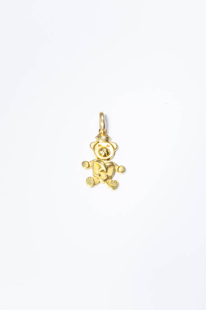 Ciondolo in oro giallo, firmato "Pomellato", a forma di orsetto con testa ed arti mobili.