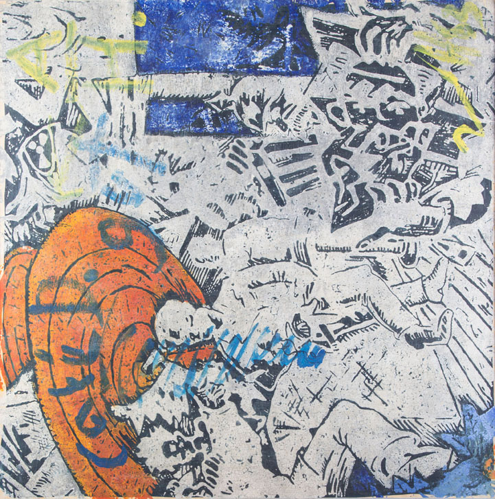 Cafe D.Gut, 1983, engraving on linoleum and tempera on paper