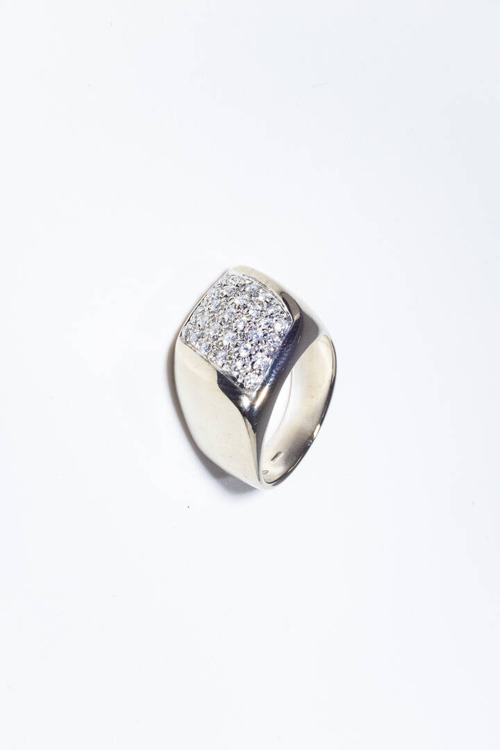 in oro bianco, sommità romboidale con pavé di diamanti taglio brillante per totali ct 0,30 ca.