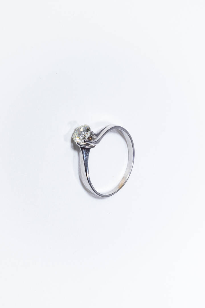 in oro bianco con diamante taglio brillante di ct 0,70 ca, probabile colore I, purezza VS.