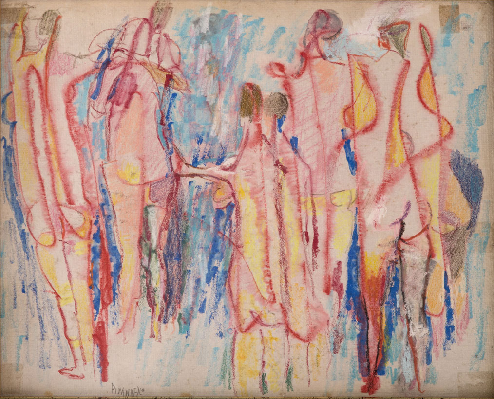 Bagnanti (Bathers), 1960, pastel and tempera on canvas-backed paper