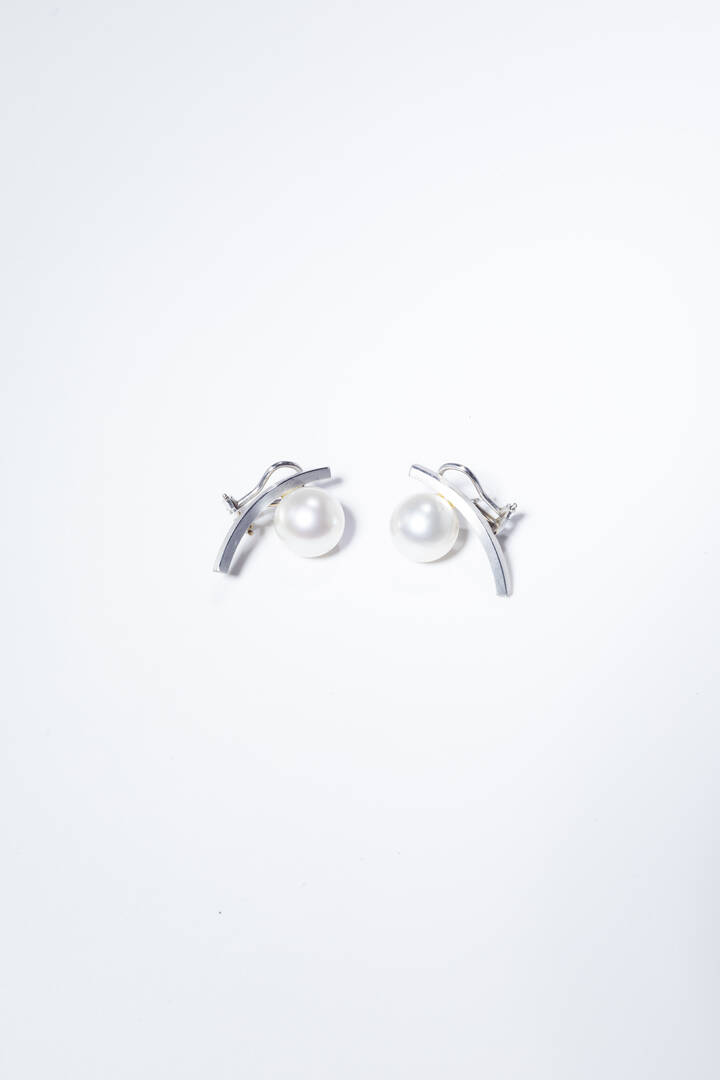 in oro bianco, firmati "Di Lilla", con elementi rigidi curvati trattenenti due perle australiane del diam. di mm 12,2 ca.