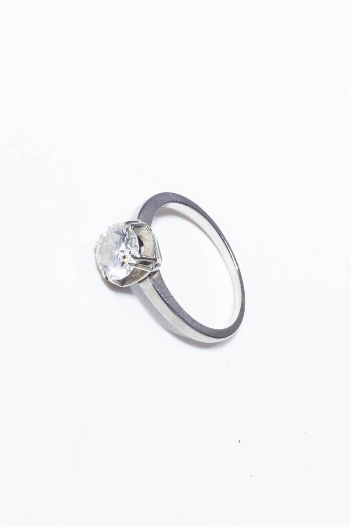 Anello in lega di palladio e platino eseguito da Cirio-Bonisoli nel 1965; al centro diamante solitario taglio brillante di ct 0,76.