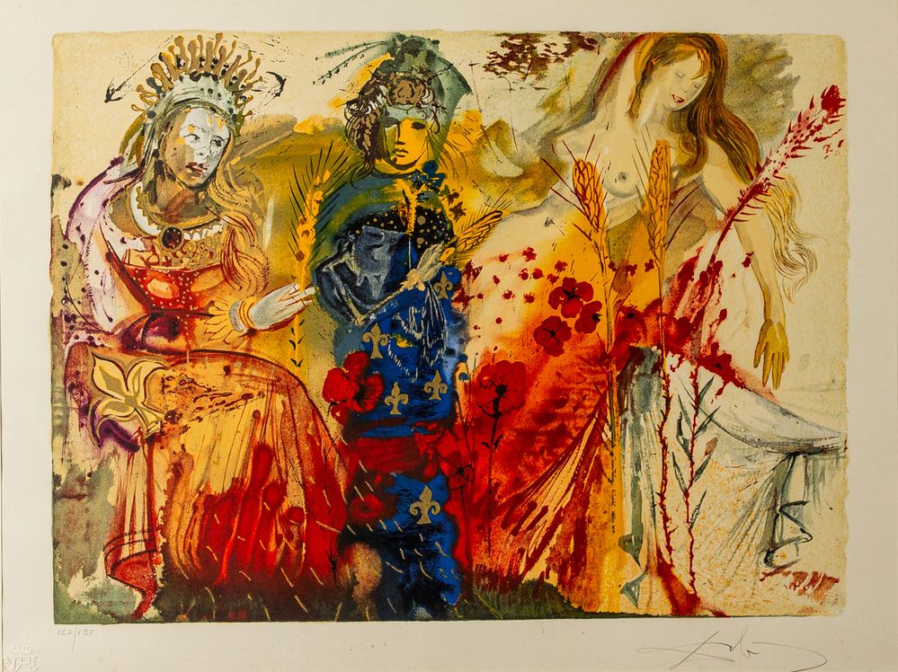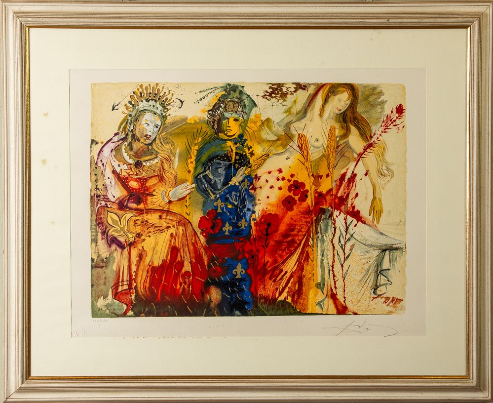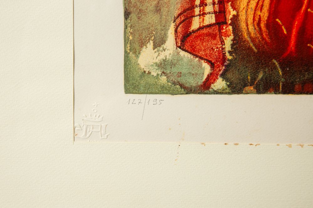 SALVADOR DALI (Figueres 1904 - 1989) "Le quattro stagioni: Autunno". Litografia a colori su carta. Cm lastra: 41,5 x 55,8 cm. Opera firmata in basso a destra Dalì. Reca timbro in basso a sinistra Dalì 1971 e numeri di tiratura 97/195