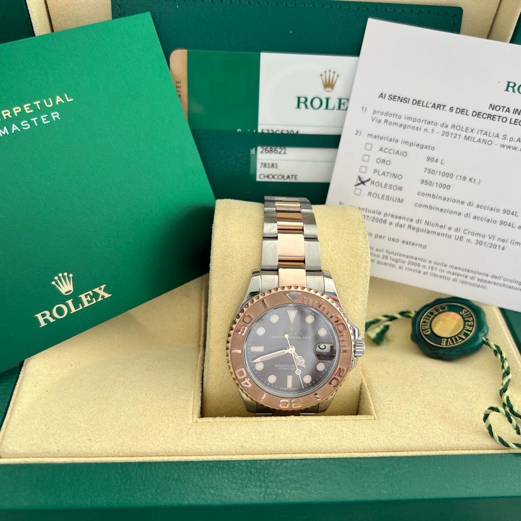 Rolex Yacht Master 37 referenza 268621 Carica automatico Materiale cassa acciaio / oro rosa Materiale cinturino acciaio / oro rosa Scatola di fornitura e documenti originali Rolex Diametro 37mm Quadrante chocolate Vetro zaffiro