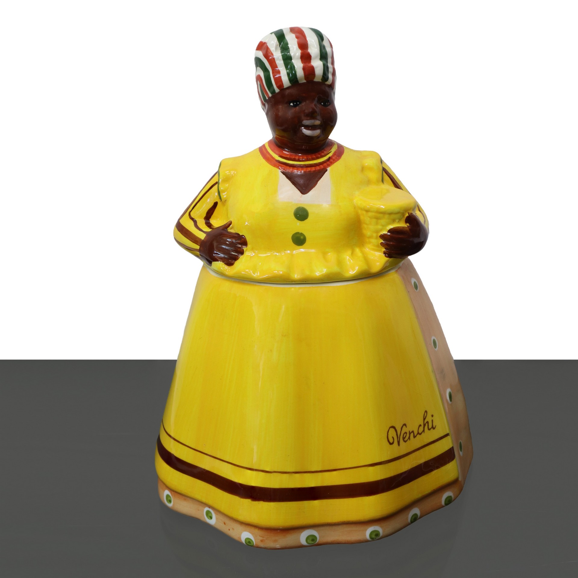 Villa d'Este - Biscottiera nera con vestito giallo Venchi H cm 26,5