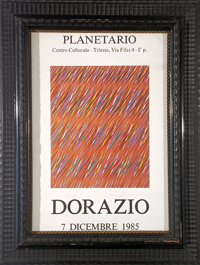 Poster della mostra a Trieste, in antica e rara cornice in legno guilloche nera.