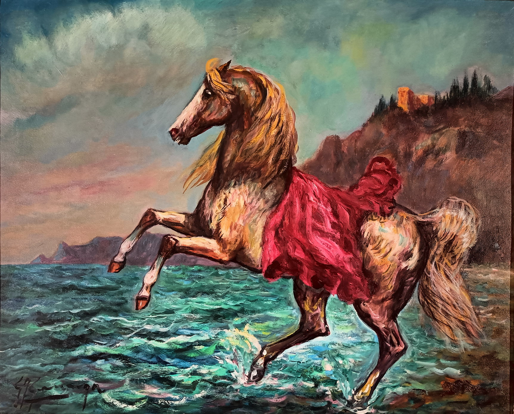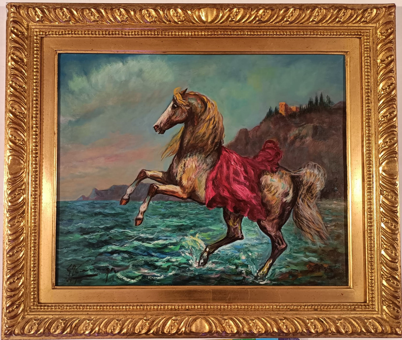 GONZAGA GIOVAN FRANCESCO milano (milano) 1902 Corsiero fra le acque Olio su...