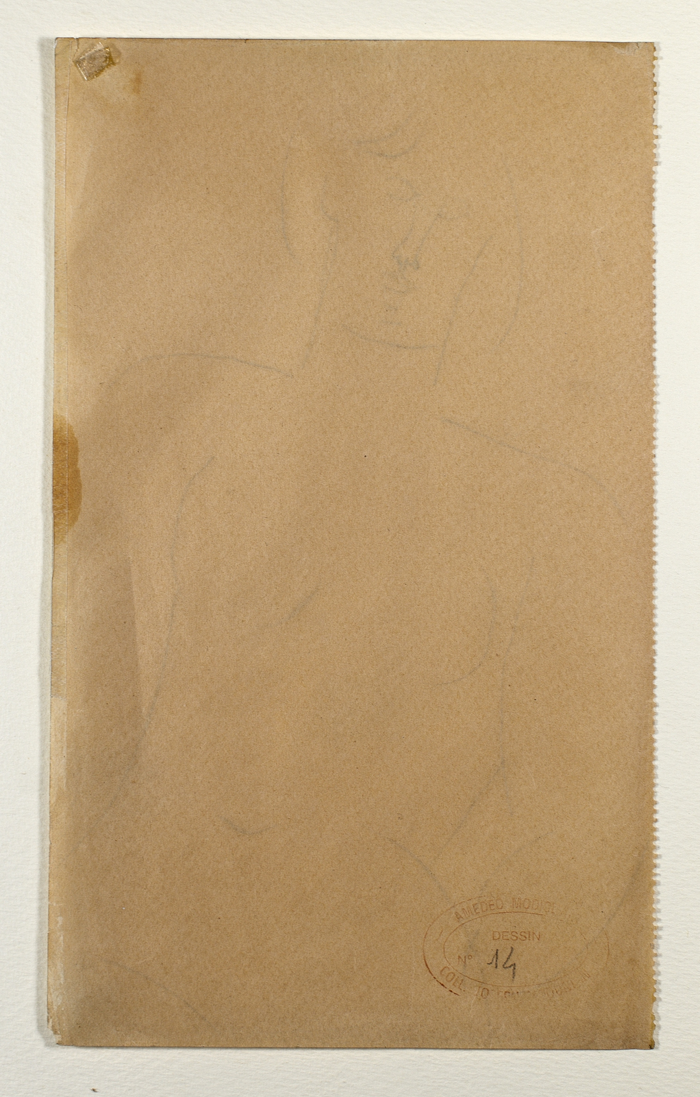 MODIGLIANI AMEDEO (1884 - 1920) NUDO (NU ASSIS). 1915. mina di piombo su carta. Cm 13,00 x 21,00. sul retro: timbro ‘AMEDEO MODIGLIANI DESSIN COLL. (…) N° 14’