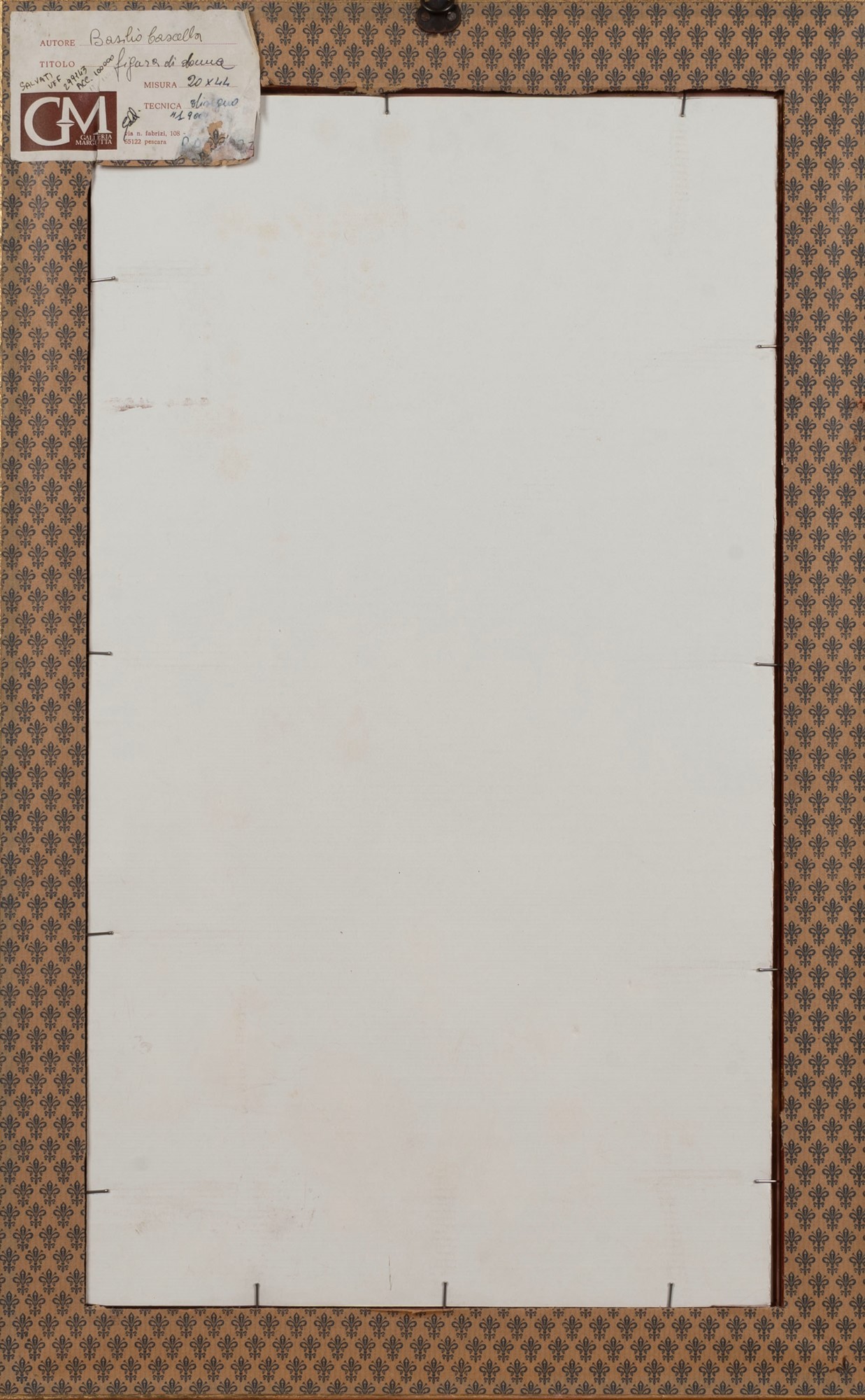 Sul retro: autentica manoscritta: Disegno di mio / nonno Basilio / Giovanna Cascella; sulla cornice, cartoncino della Galleria Margutta di Pescara con riferimenti all'autore e all'opera.