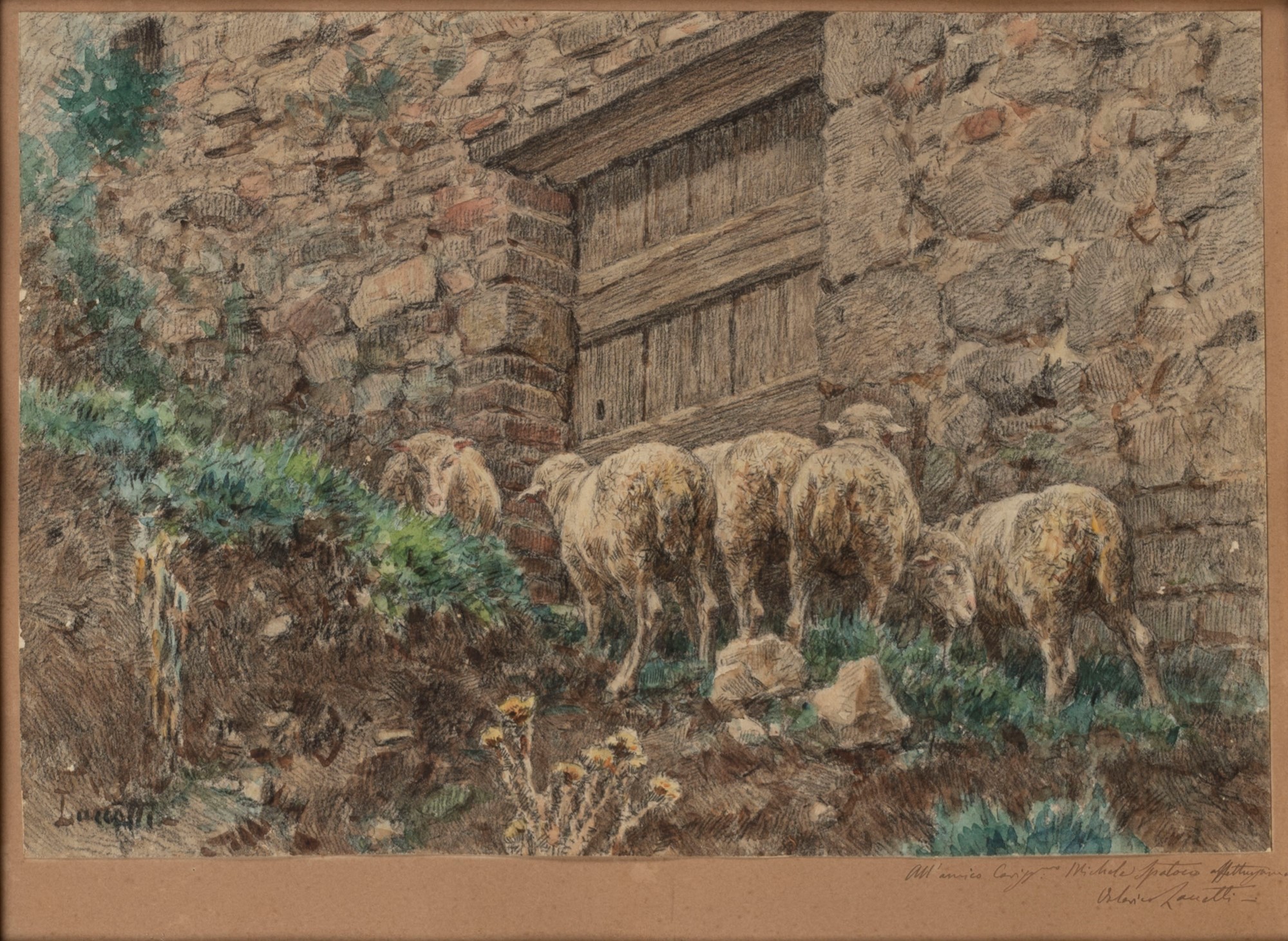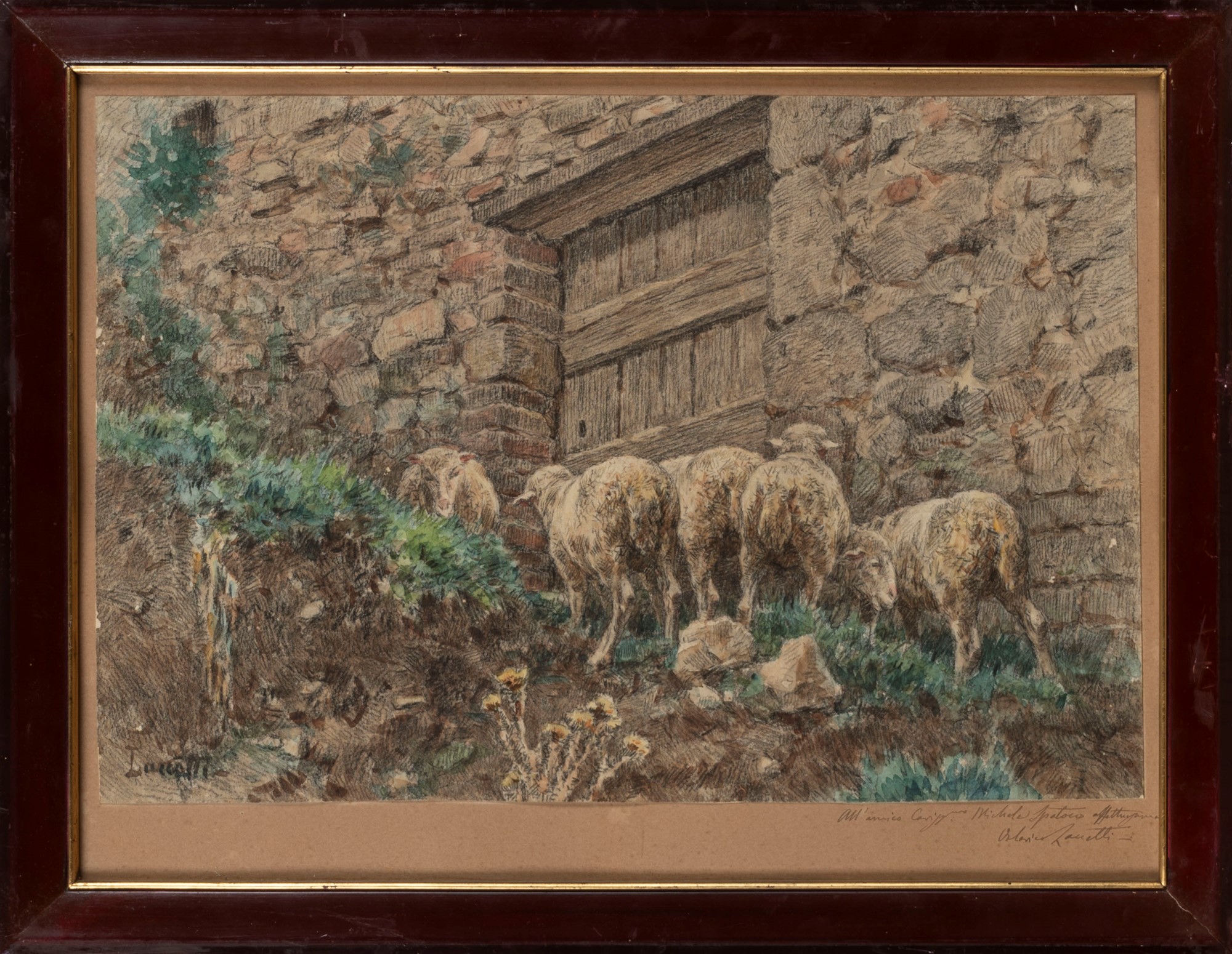 Valerio Laccetti (Vasto 1836-Roma 1909) - Pecore al pascolo presso l'antica porta