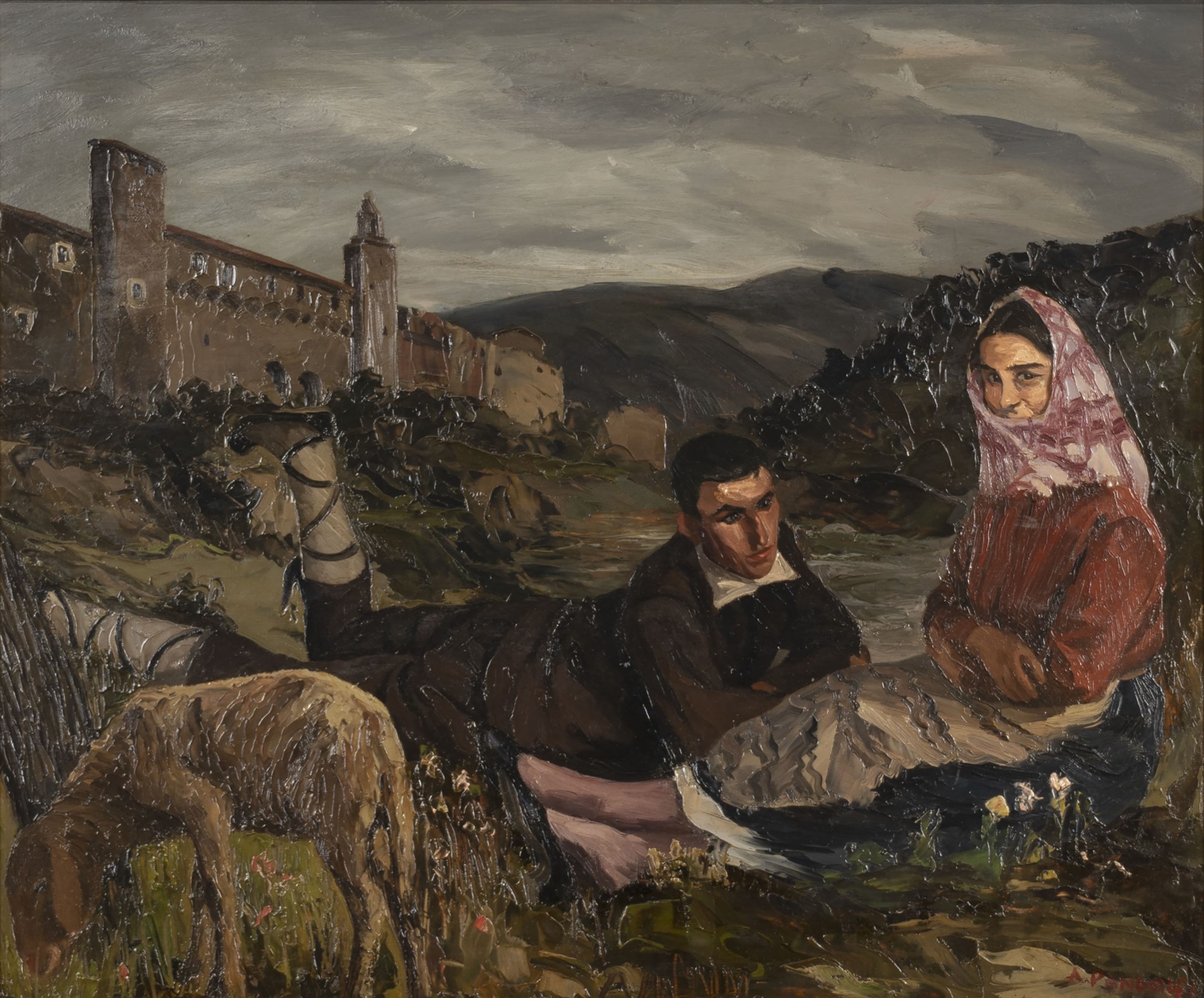 Alessandro Pandolfi (Castellammare Adriatico 1887-Pavia 1953) - Coppia di giovani pastori