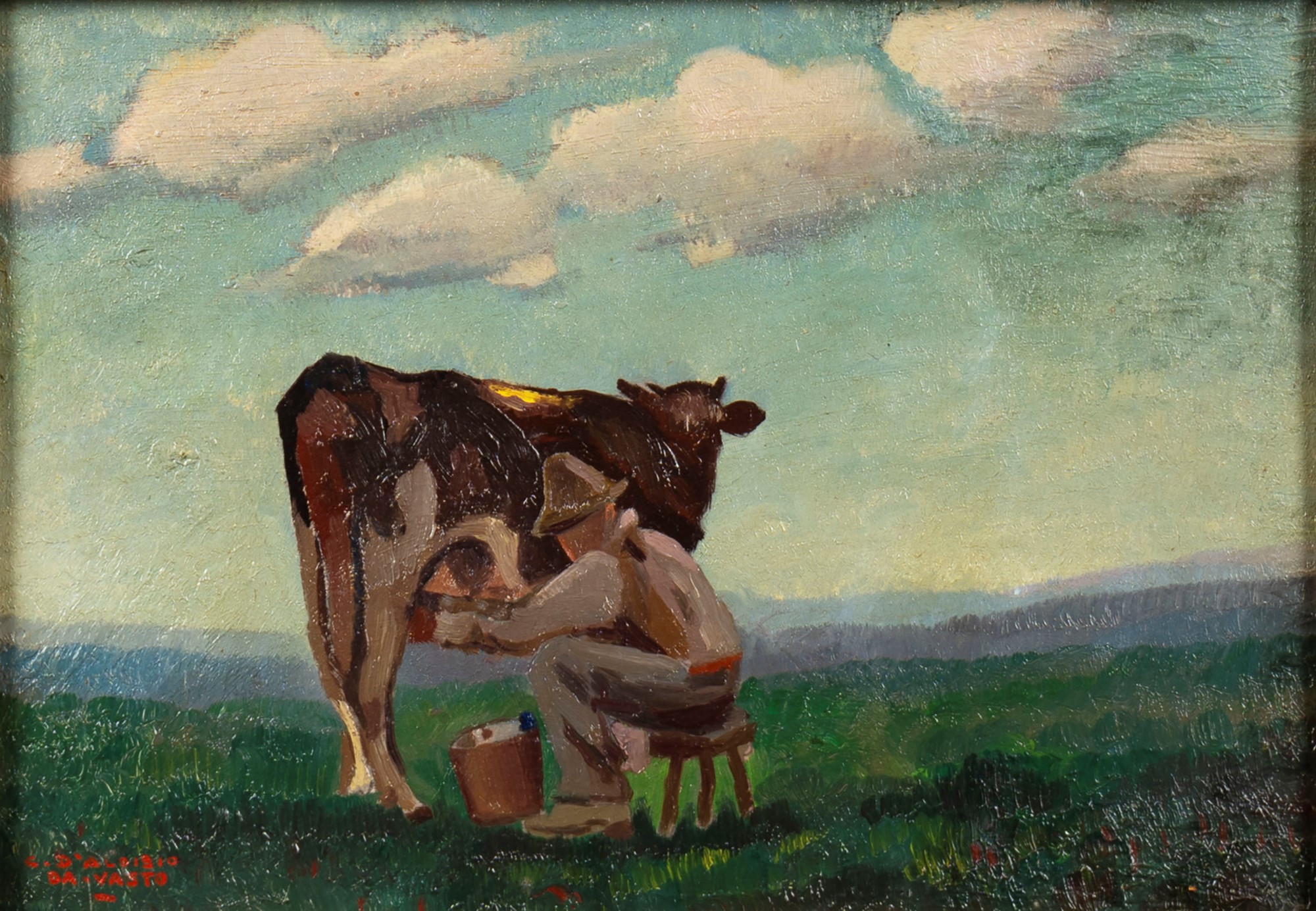 Carlo D'Aloisio da Vasto (Vasto 1892-Roma 1971) - "La mungitura"