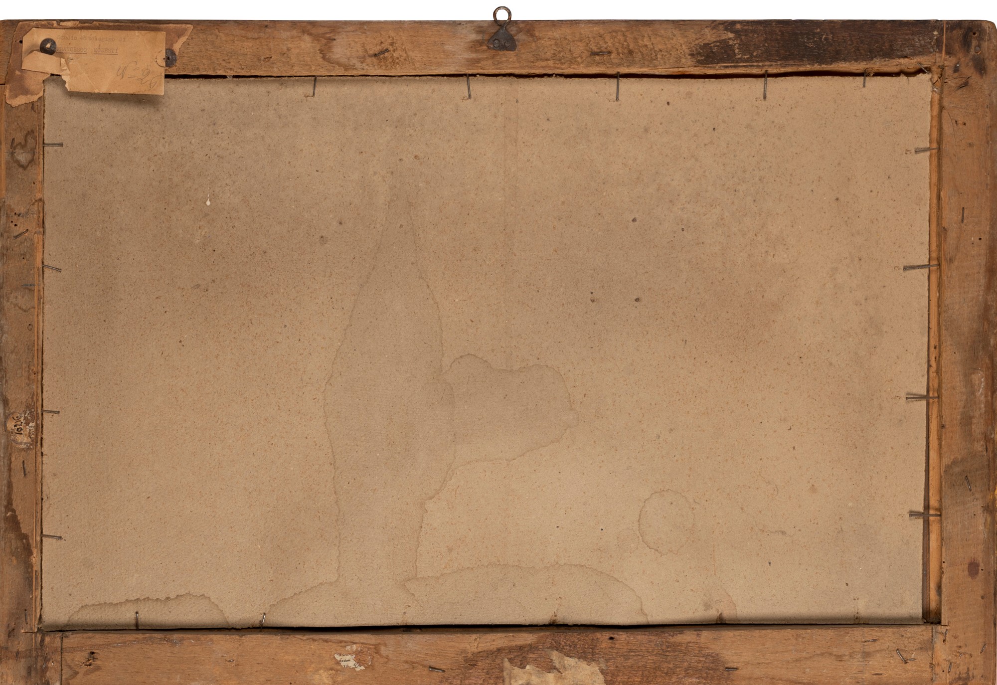 Sul retro, sulla cornice, cartellino a stampa con riferimenti all'autore e all'opera e numero di riferimento a matita (n. 26); antico cartellino con numero di riferimento a penna (10216).