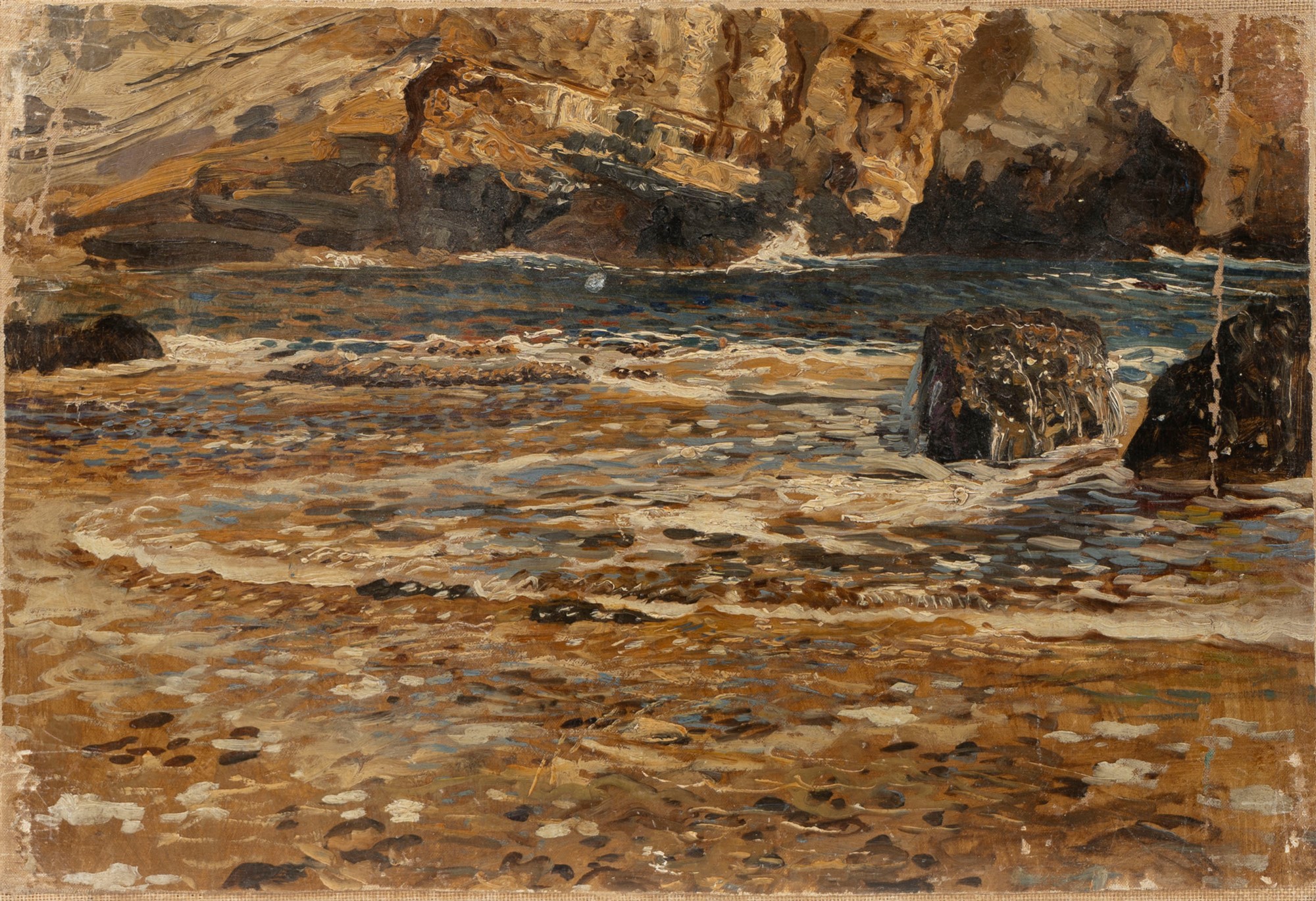 olio su tela, riportata su tela, senza cornice, cm 32,5 x 47,3