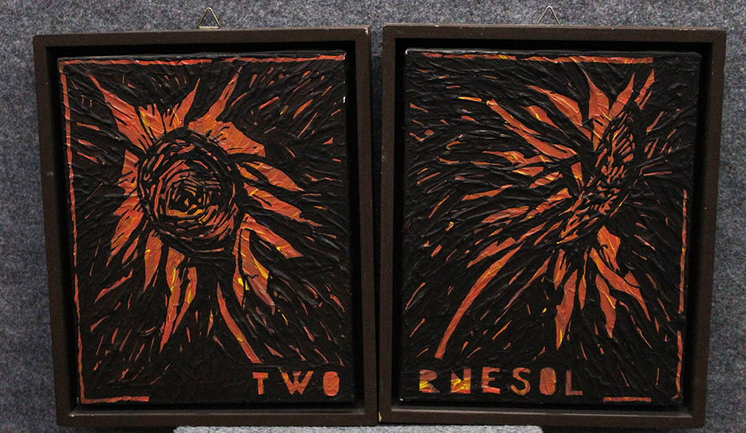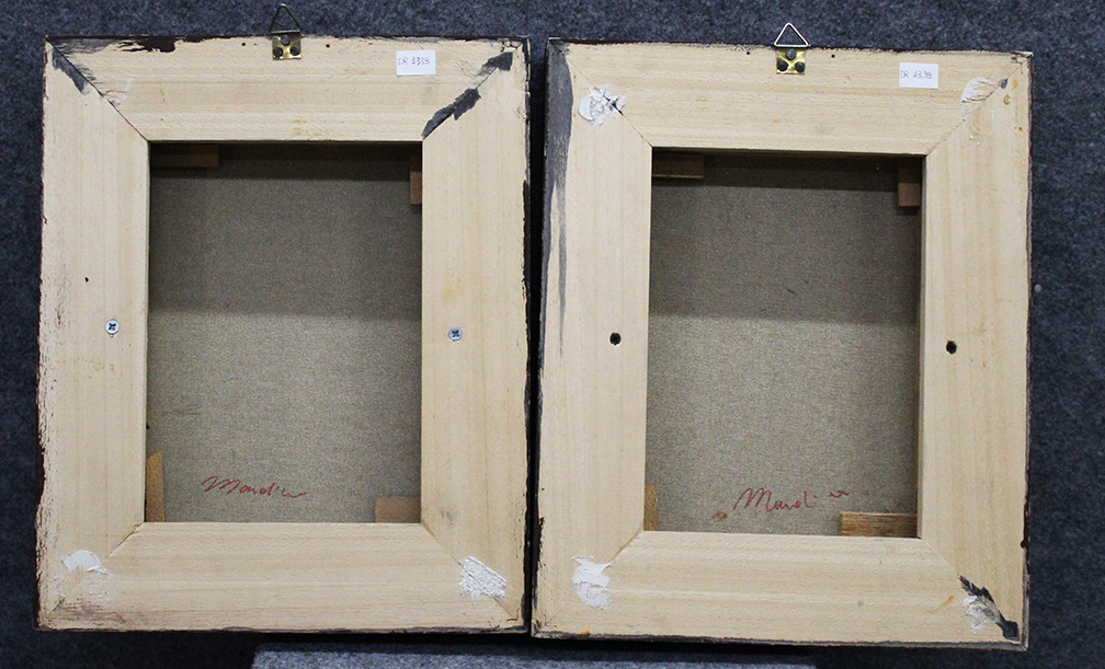 ALDO MONDINO, "Two Rnesol", Anno in corso di studio, Dittico olio su tela, Dim. 30x48, Al verso: firma in basso al centro di ciascuna delle due opere, Opera archiviata presso l'Archivio Aldo Mondino al N° 20111021142123 in data 14/11/2011 a Milano. Opera con cornice.