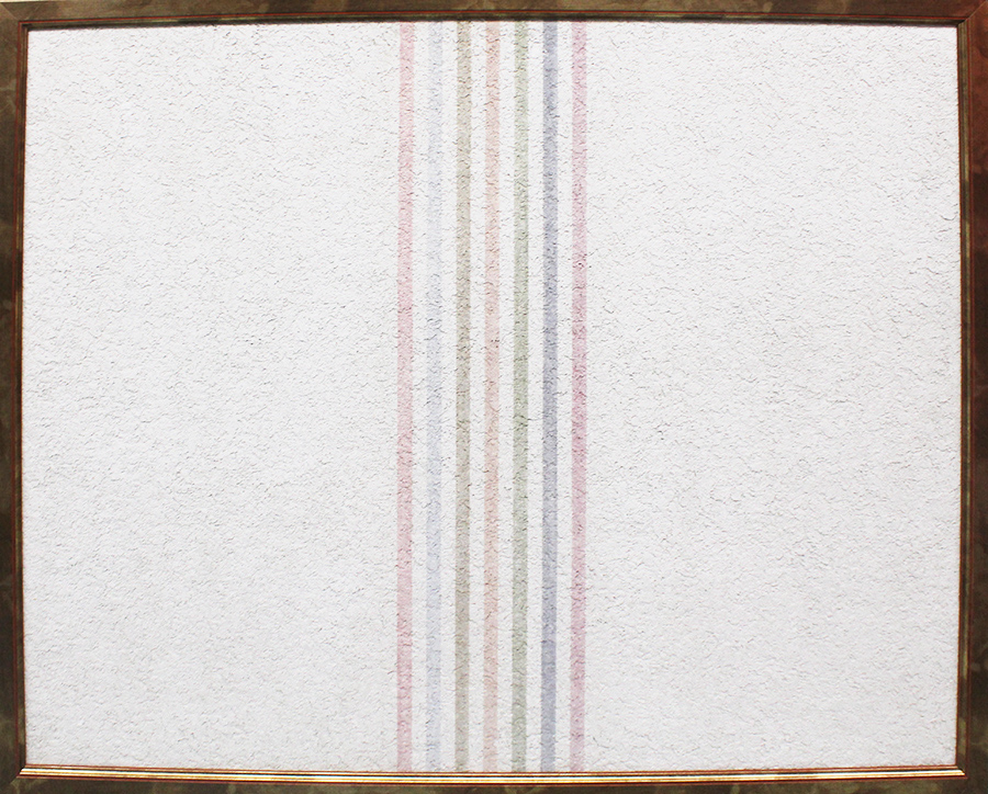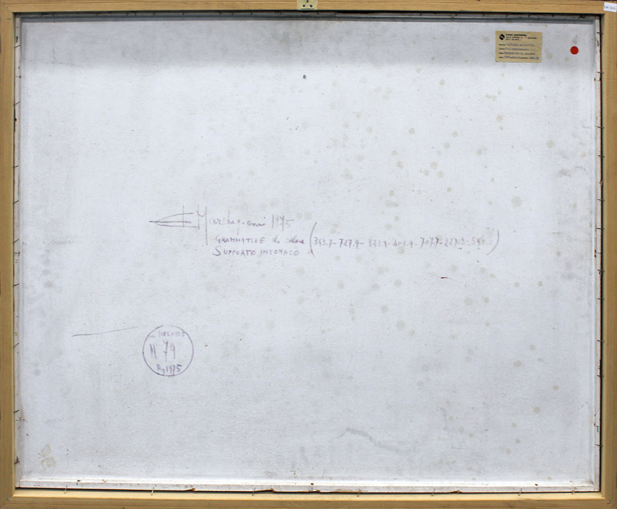 ELIO MARCHEGIANI, "Grammature di colore", 1975, Intonaco su tavola, Dim. 80x100, Al verso: firma, titolo anno, tecnica, Opera con autentica su foto. Opera con cornice.