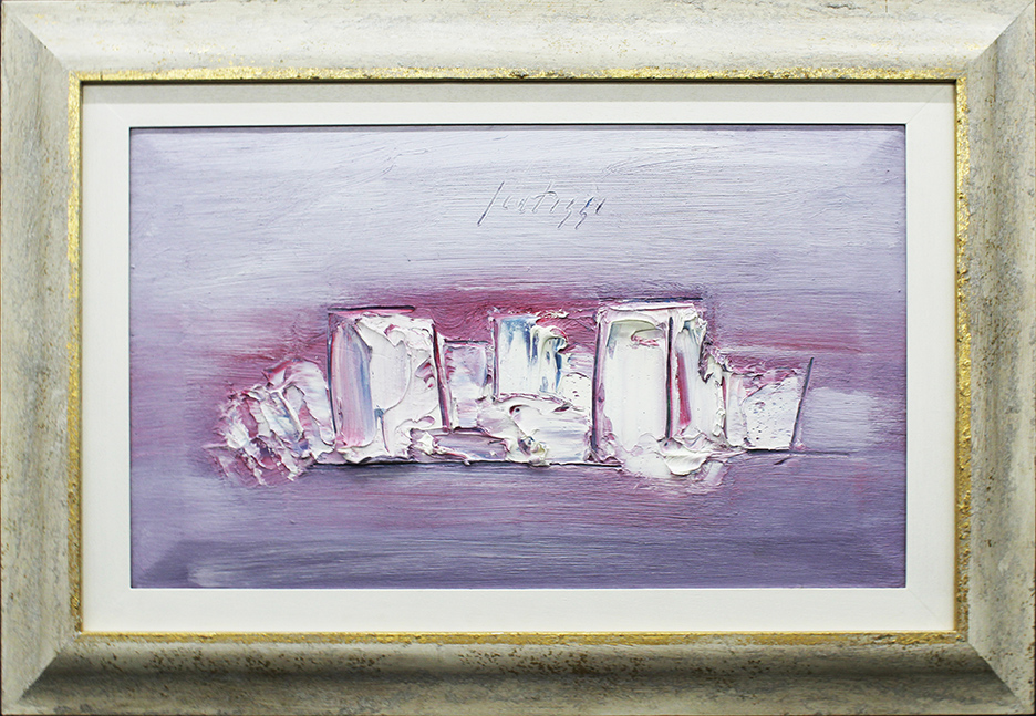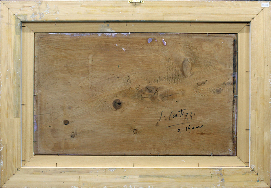 SERGIO SCATIZZI, olio su tavola, dim 35X60. Al fronte: firma in alto al centro. Al verso: firma e dedica: A Remo in basso a destra. Opera con cornice.