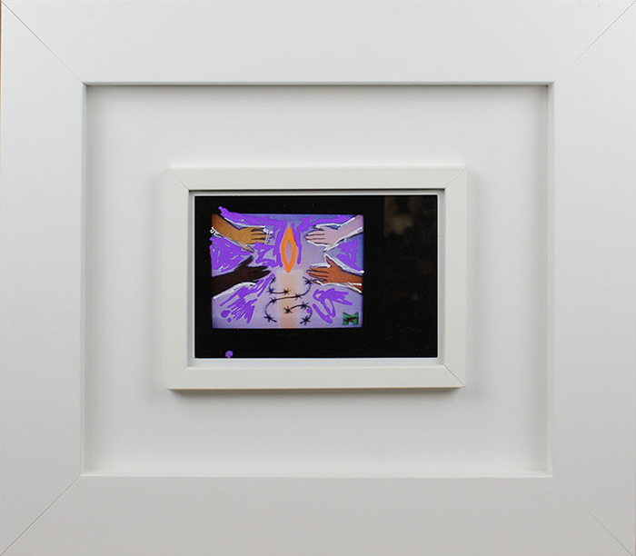 MARIO SCHIFANO, Erotika, 1990-97, Foto ritoccata a smalto, Esemplare unico, Dim. 10x15, Opera archiviata presso la Fondazione Mario Schifano " Archivio Generale dell' Opere di Mario Schifano " con n° archivio: F90-97/6464, il 24 ottobre 2007, Opera pubblicata sul catalogo " Mario Schifano fotografie ritoccate " a pag.171, volume I, Al verso: firma "Schifano", Opera con cornice