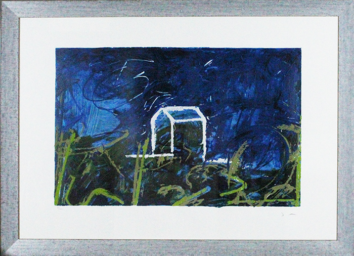 MARIO SCHIFANO, "Veduta notturna", Serigrafia materica a smalto su cartoncino, Dim. 70x100, Al fronte: tiratura 95/199 in basso a sinistra, firmato in basso a destra, Opera con cornice
