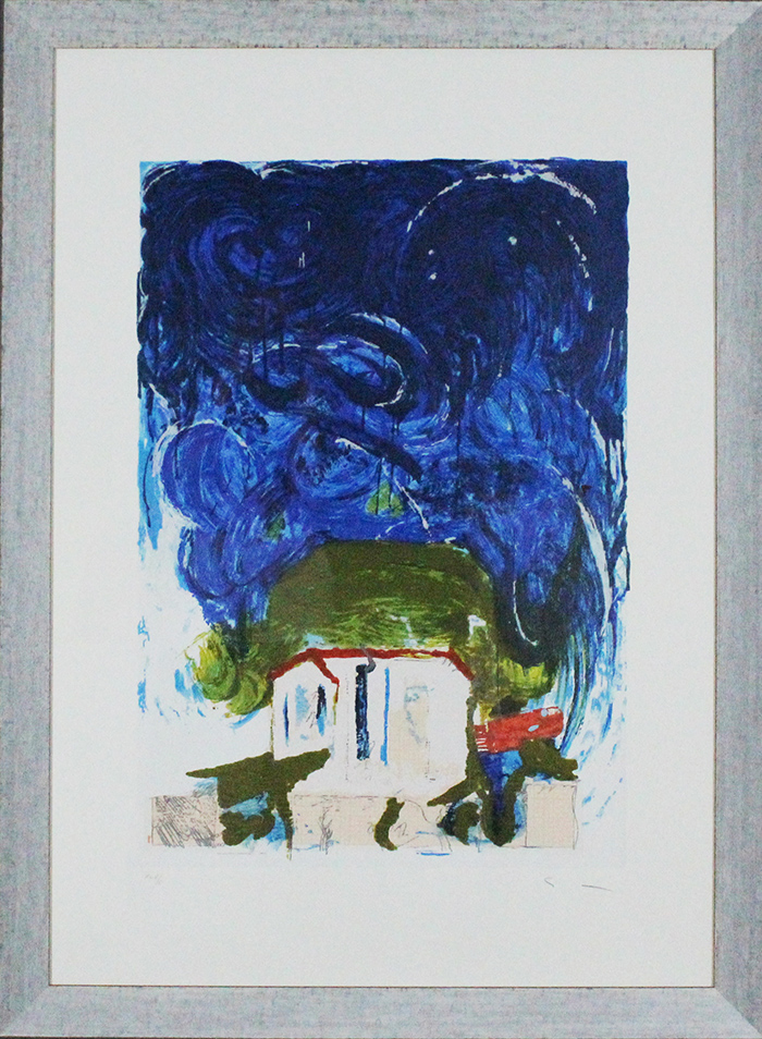 MARIO SCHIFANO, "Casa dolce", 1997, Serigrafia materica a smalto e collage su cartoncino, Dim. 70x100, Al fronte: tiratura in basso a sinistra, firmato in basso a destra, Opera pubblicata sul catalogo Torcular "serigrafie 1996/97", Volume IV al N°31. Opera con cornice.