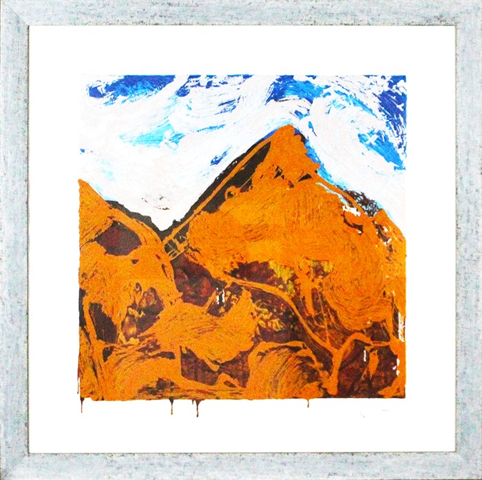 MARIO SCHIFANO, "Montagna", Serigrafia materica a smalto su cartoncino, Dim. 85x85, Al fronte: tiratura in basso a sinistra, firmato in basso a destra, Opera con cornice