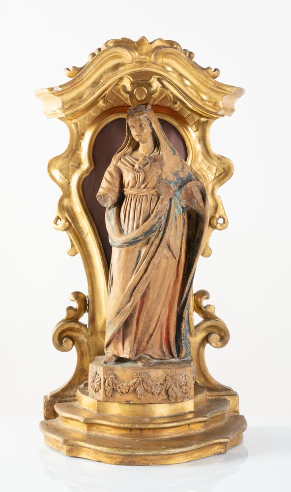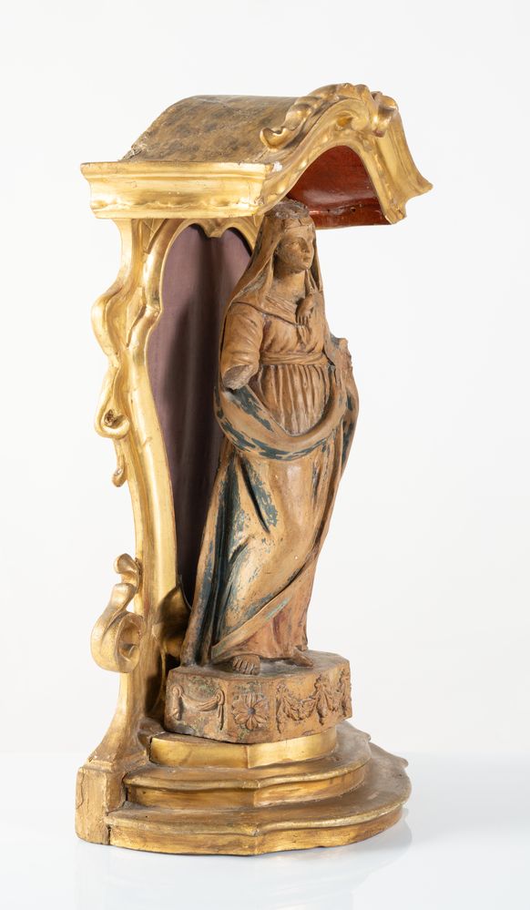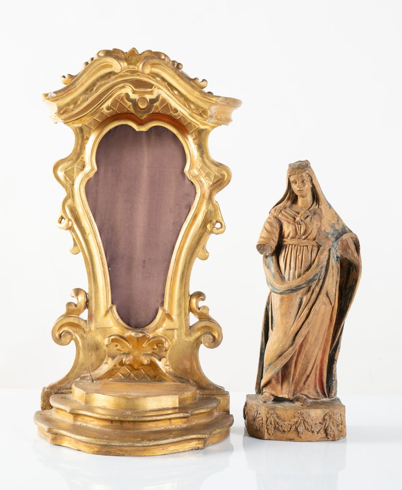 Lot 82 | Tabernacolo in legno intagliato e dorato con all'interno Madonna in...
