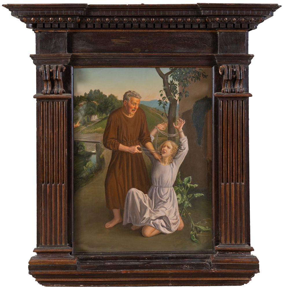 Pittore anonimo del XX secolo. "Il martirio di Sant'Apollonia". Olio su tavola. Cm 80x61.
