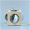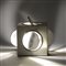 A white-varnished metal cubical lamp. Five of the sides are open with circular portholes closed by hinged chromed metal circular windows. The portholes can be opened and the light pointed in the desired direction, that comes from a light bulb therein.