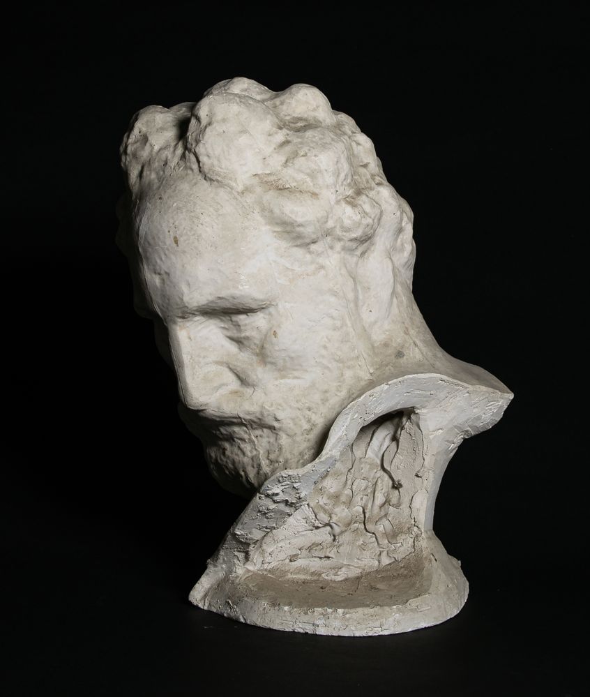Manifattura italiana del XIX secolo - XX secolo. Calco in gesso raffigurante testa del Crepuscolo di Michelangelo. Cm 46,5x31x36.