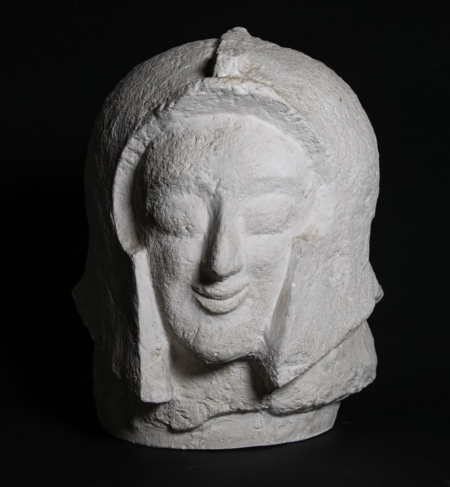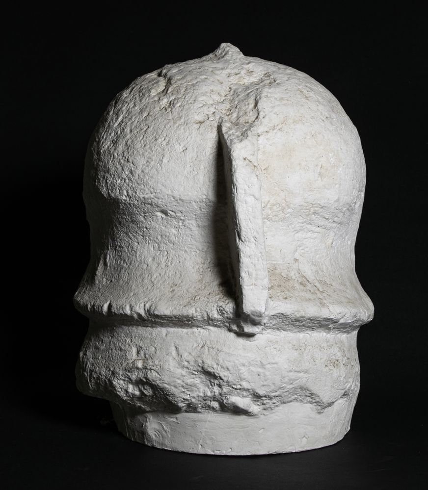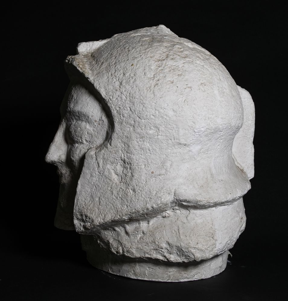 Manifattura italiana del XIX secolo - XX secolo. Calco in gesso raffigurante testa di guerriero etrusco. Cm 47x35x39.