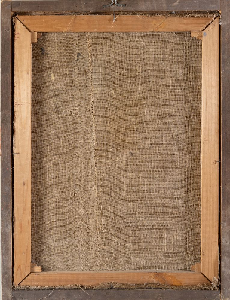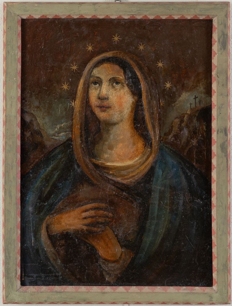 Maestro del XIX secolo, Madonna in estasi (restauri). Olio su tela. Cm 75x55,5.