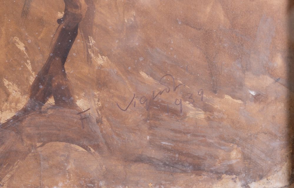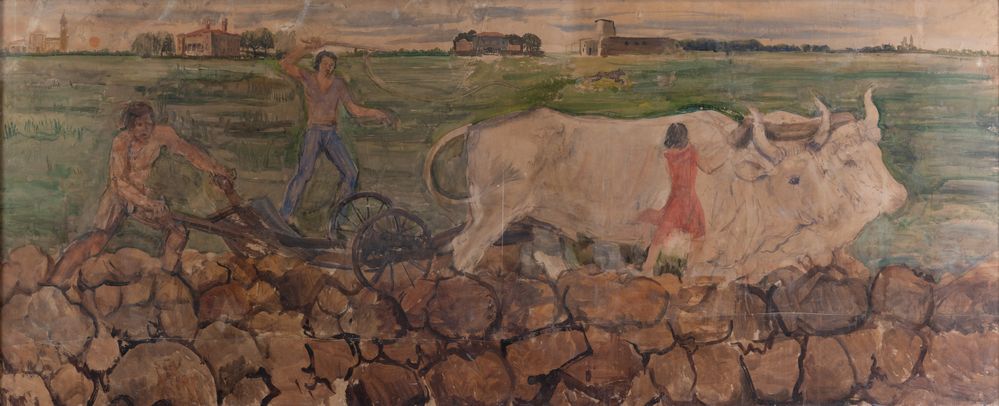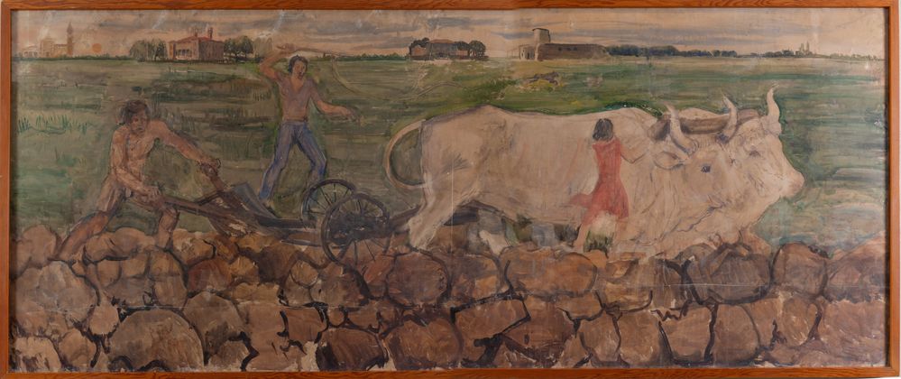 FARPI VIGNOLI (Bologna 1907 – 1997) "Aratura", 1939. Acquerello e tempera su carta. Cm 98x254.