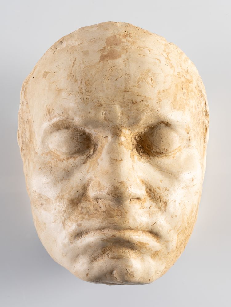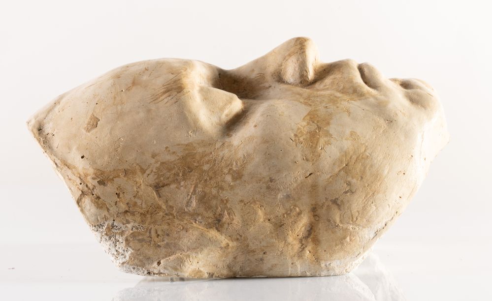 Manifattura italiana del XIX secolo - XX secolo. Calco in gesso raffigurante maschera funebre di Ludvig Van Beethoven. Cm 23x18x11,5.